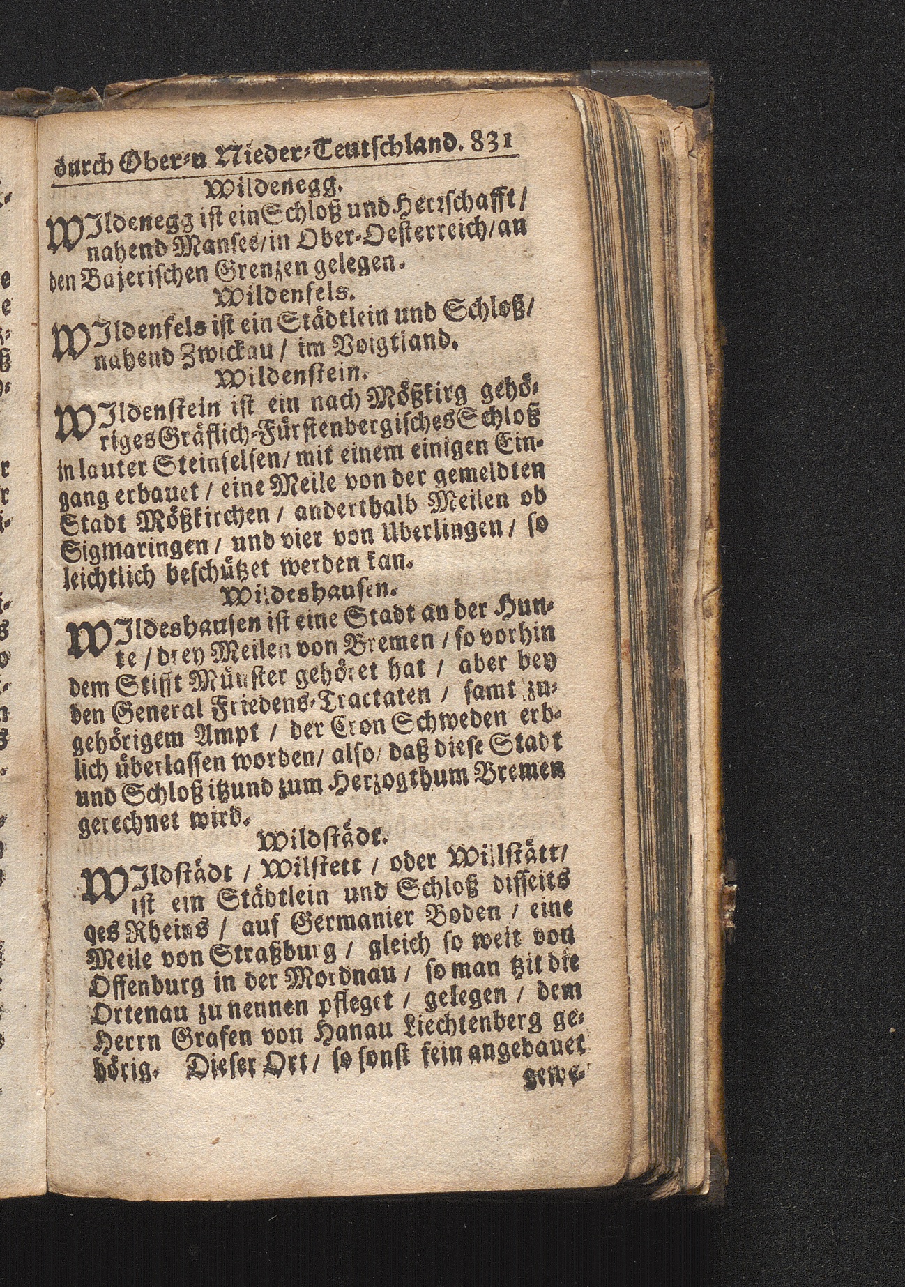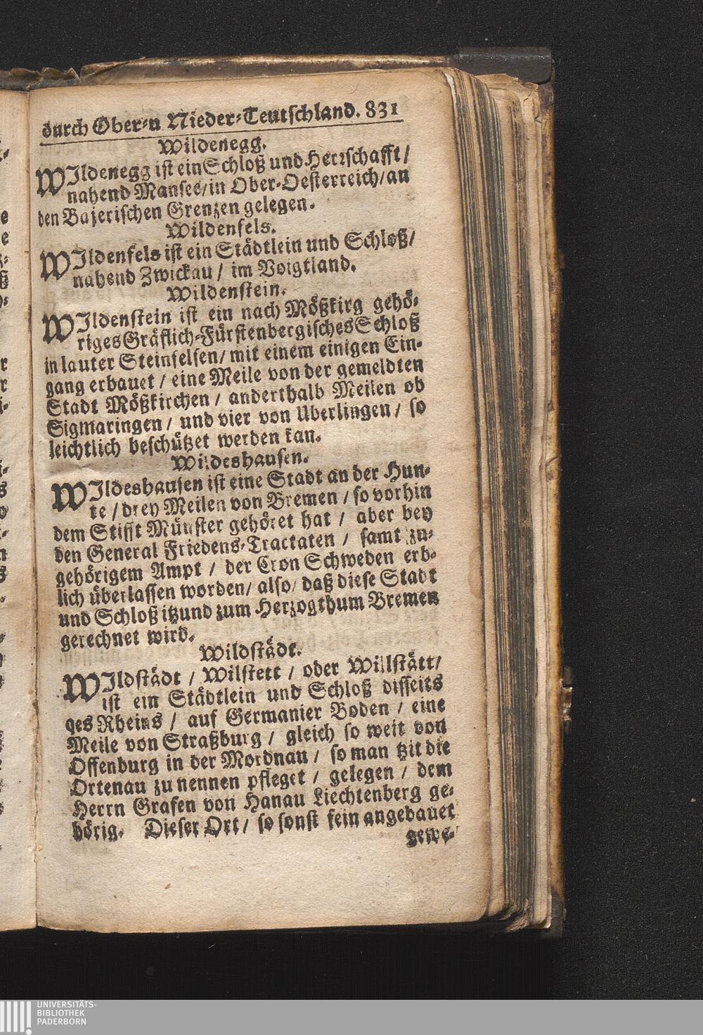 Der getreue Reiß-Gefert durch Ober- und Nieder-Teutschland : Das ist: Grundrichtige und ausführliche Abhandlung derer jenigen Residenzien/ Städte/ Schlösser/ Vestungen/ Städtlein und nahmhafften Markflecken/ welche so wol in Ober- als Nieder-Teutschland/ einem Reisenden sich hin und wieder vorstellig machen und zwar solcher Gestalt/ daß darinn derer Ursprung/ Aufnahm/ Fortification/ Raritäten/ herrliche Gebäue/ und Glück- und Unglücks-Fälle bis auf gegenwärtige Zeit fortgesetzt enthalten. Dabey auch noch über das ein absonderlicher kurz-gefasster Weegweiser angehänget zu finden/ worinnen klärlich zu sehen, wie viel Meilen ein Ort von dem andern entlegen. Alles aus denen bewährtesten Scribenten hervorgesuchet/ zum Nutz-Ergötzen mitgetheilet ...