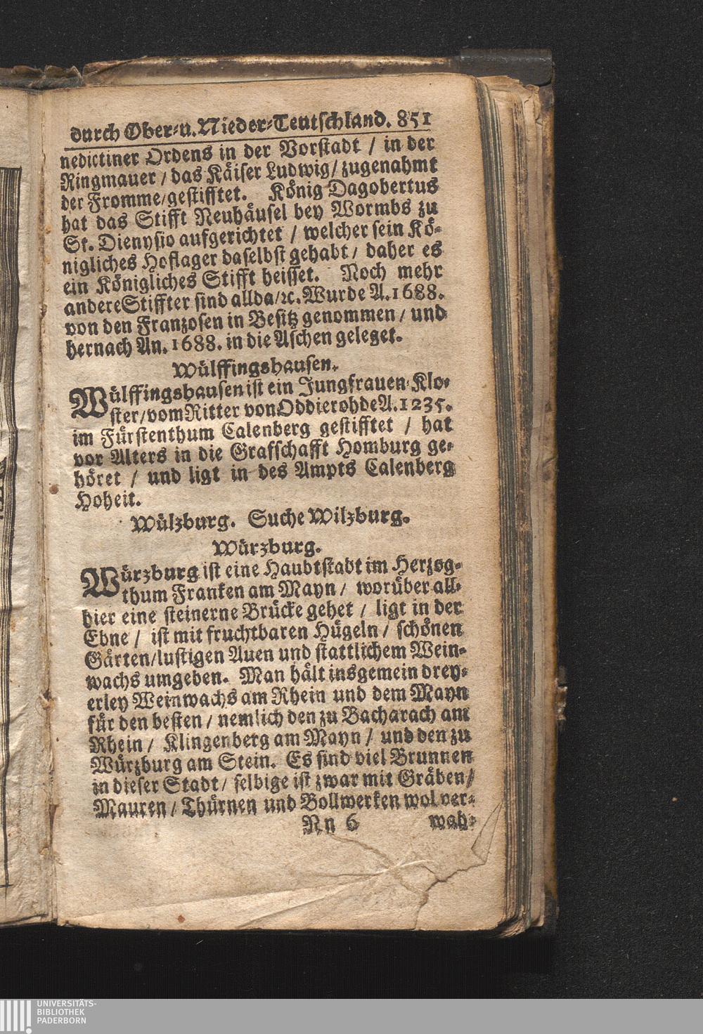 Der getreue Reiß-Gefert durch Ober- und Nieder-Teutschland : Das ist: Grundrichtige und ausführliche Abhandlung derer jenigen Residenzien/ Städte/ Schlösser/ Vestungen/ Städtlein und nahmhafften Markflecken/ welche so wol in Ober- als Nieder-Teutschland/ einem Reisenden sich hin und wieder vorstellig machen und zwar solcher Gestalt/ daß darinn derer Ursprung/ Aufnahm/ Fortification/ Raritäten/ herrliche Gebäue/ und Glück- und Unglücks-Fälle bis auf gegenwärtige Zeit fortgesetzt enthalten. Dabey auch noch über das ein absonderlicher kurz-gefasster Weegweiser angehänget zu finden/ worinnen klärlich zu sehen, wie viel Meilen ein Ort von dem andern entlegen. Alles aus denen bewährtesten Scribenten hervorgesuchet/ zum Nutz-Ergötzen mitgetheilet ...