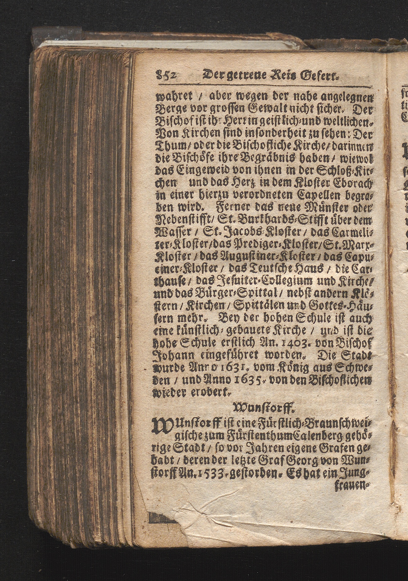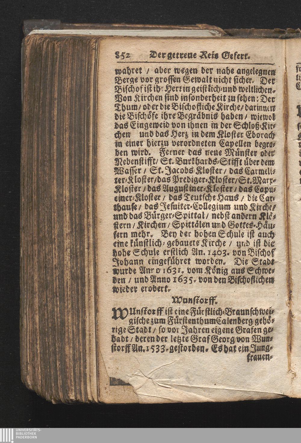 Der getreue Reiß-Gefert durch Ober- und Nieder-Teutschland : Das ist: Grundrichtige und ausführliche Abhandlung derer jenigen Residenzien/ Städte/ Schlösser/ Vestungen/ Städtlein und nahmhafften Markflecken/ welche so wol in Ober- als Nieder-Teutschland/ einem Reisenden sich hin und wieder vorstellig machen und zwar solcher Gestalt/ daß darinn derer Ursprung/ Aufnahm/ Fortification/ Raritäten/ herrliche Gebäue/ und Glück- und Unglücks-Fälle bis auf gegenwärtige Zeit fortgesetzt enthalten. Dabey auch noch über das ein absonderlicher kurz-gefasster Weegweiser angehänget zu finden/ worinnen klärlich zu sehen, wie viel Meilen ein Ort von dem andern entlegen. Alles aus denen bewährtesten Scribenten hervorgesuchet/ zum Nutz-Ergötzen mitgetheilet ...