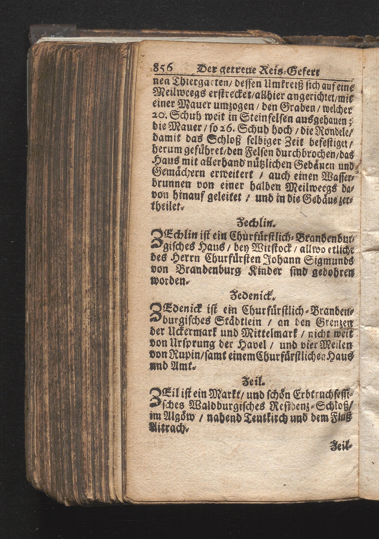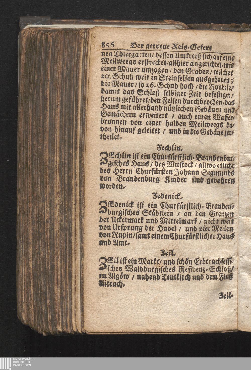 Der getreue Reiß-Gefert durch Ober- und Nieder-Teutschland : Das ist: Grundrichtige und ausführliche Abhandlung derer jenigen Residenzien/ Städte/ Schlösser/ Vestungen/ Städtlein und nahmhafften Markflecken/ welche so wol in Ober- als Nieder-Teutschland/ einem Reisenden sich hin und wieder vorstellig machen und zwar solcher Gestalt/ daß darinn derer Ursprung/ Aufnahm/ Fortification/ Raritäten/ herrliche Gebäue/ und Glück- und Unglücks-Fälle bis auf gegenwärtige Zeit fortgesetzt enthalten. Dabey auch noch über das ein absonderlicher kurz-gefasster Weegweiser angehänget zu finden/ worinnen klärlich zu sehen, wie viel Meilen ein Ort von dem andern entlegen. Alles aus denen bewährtesten Scribenten hervorgesuchet/ zum Nutz-Ergötzen mitgetheilet ...