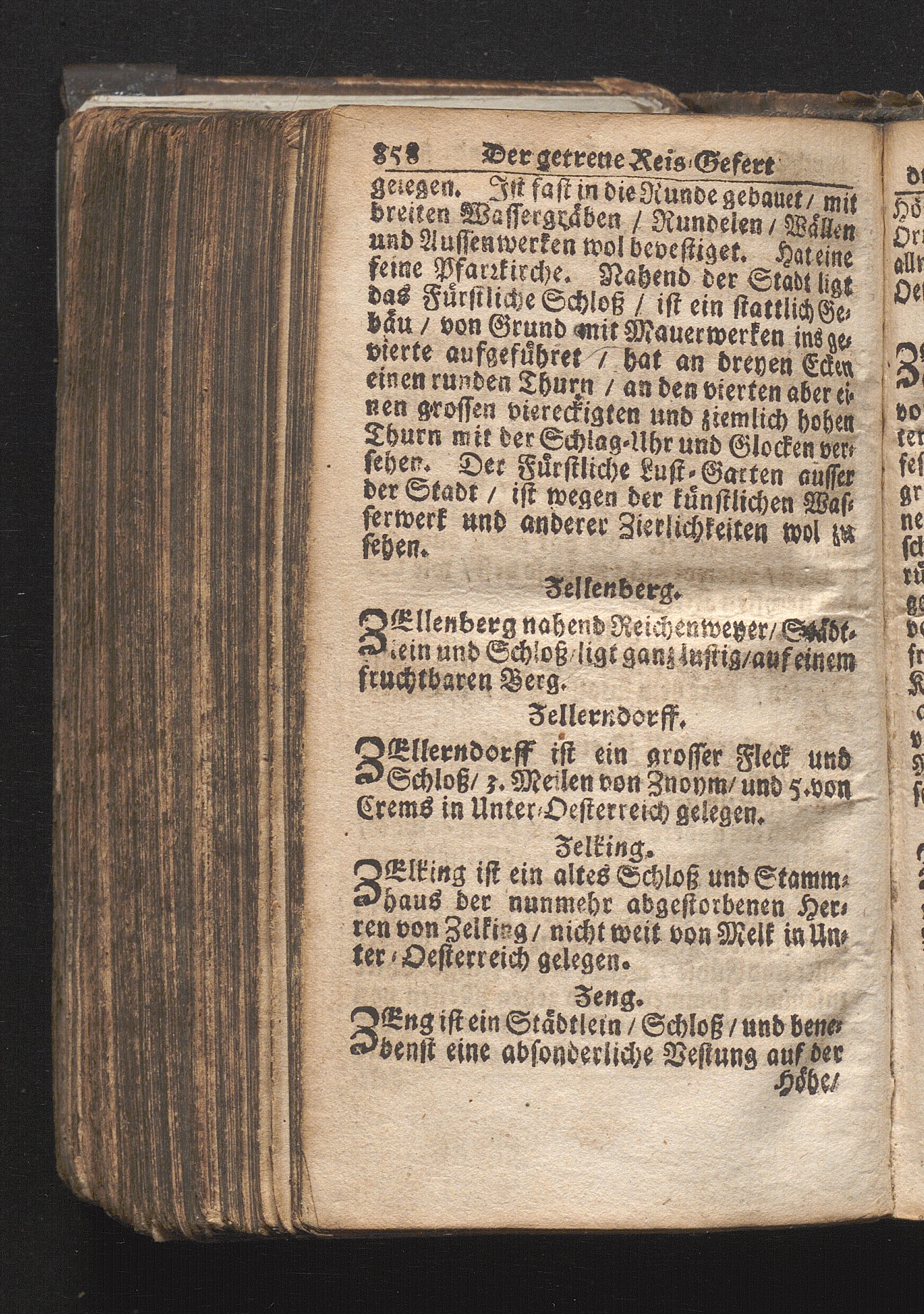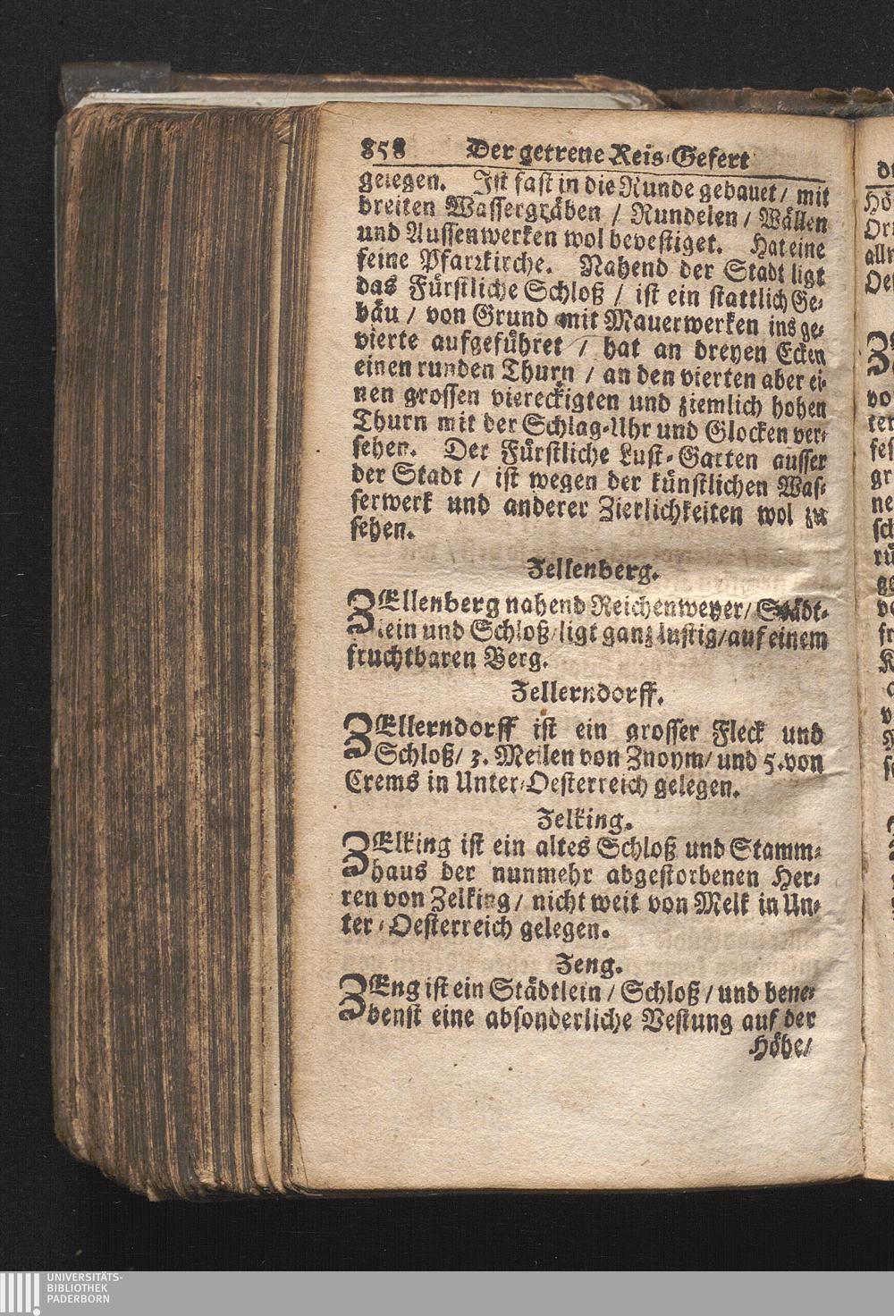 Der getreue Reiß-Gefert durch Ober- und Nieder-Teutschland : Das ist: Grundrichtige und ausführliche Abhandlung derer jenigen Residenzien/ Städte/ Schlösser/ Vestungen/ Städtlein und nahmhafften Markflecken/ welche so wol in Ober- als Nieder-Teutschland/ einem Reisenden sich hin und wieder vorstellig machen und zwar solcher Gestalt/ daß darinn derer Ursprung/ Aufnahm/ Fortification/ Raritäten/ herrliche Gebäue/ und Glück- und Unglücks-Fälle bis auf gegenwärtige Zeit fortgesetzt enthalten. Dabey auch noch über das ein absonderlicher kurz-gefasster Weegweiser angehänget zu finden/ worinnen klärlich zu sehen, wie viel Meilen ein Ort von dem andern entlegen. Alles aus denen bewährtesten Scribenten hervorgesuchet/ zum Nutz-Ergötzen mitgetheilet ...