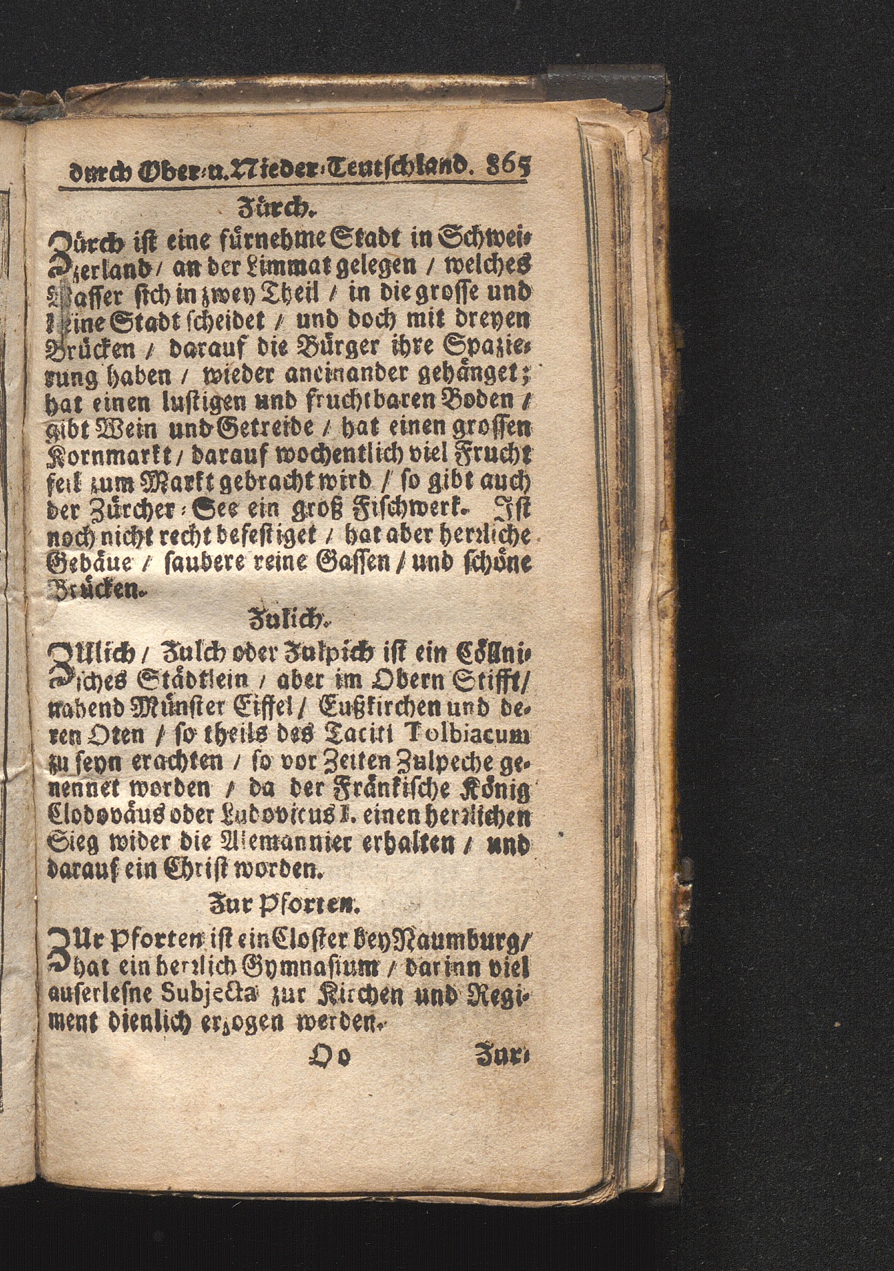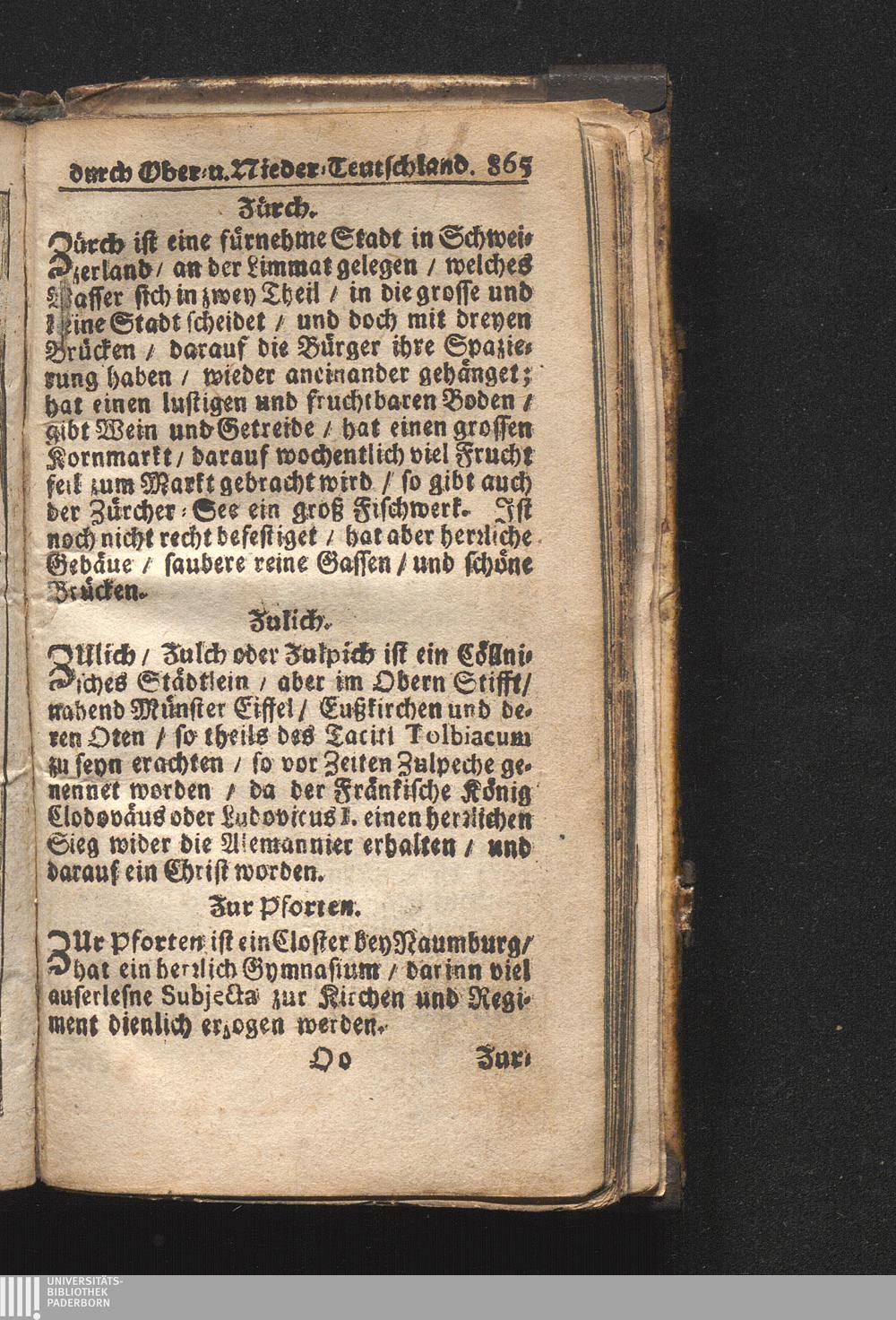Der getreue Reiß-Gefert durch Ober- und Nieder-Teutschland : Das ist: Grundrichtige und ausführliche Abhandlung derer jenigen Residenzien/ Städte/ Schlösser/ Vestungen/ Städtlein und nahmhafften Markflecken/ welche so wol in Ober- als Nieder-Teutschland/ einem Reisenden sich hin und wieder vorstellig machen und zwar solcher Gestalt/ daß darinn derer Ursprung/ Aufnahm/ Fortification/ Raritäten/ herrliche Gebäue/ und Glück- und Unglücks-Fälle bis auf gegenwärtige Zeit fortgesetzt enthalten. Dabey auch noch über das ein absonderlicher kurz-gefasster Weegweiser angehänget zu finden/ worinnen klärlich zu sehen, wie viel Meilen ein Ort von dem andern entlegen. Alles aus denen bewährtesten Scribenten hervorgesuchet/ zum Nutz-Ergötzen mitgetheilet ...