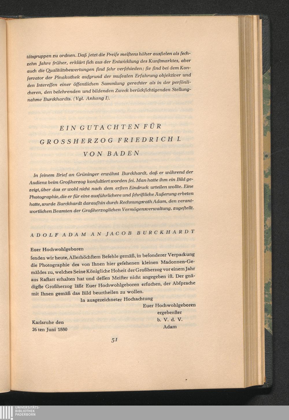 Jacob Burckhardt und die Karlsruher Galerie : Briefe und Gutachten / hrsg. von Kurt Martin