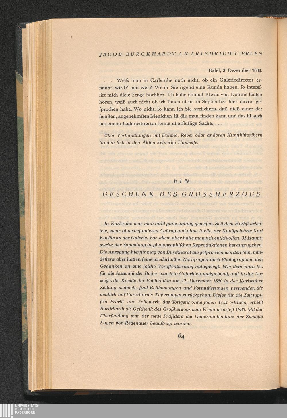Jacob Burckhardt und die Karlsruher Galerie : Briefe und Gutachten / hrsg. von Kurt Martin