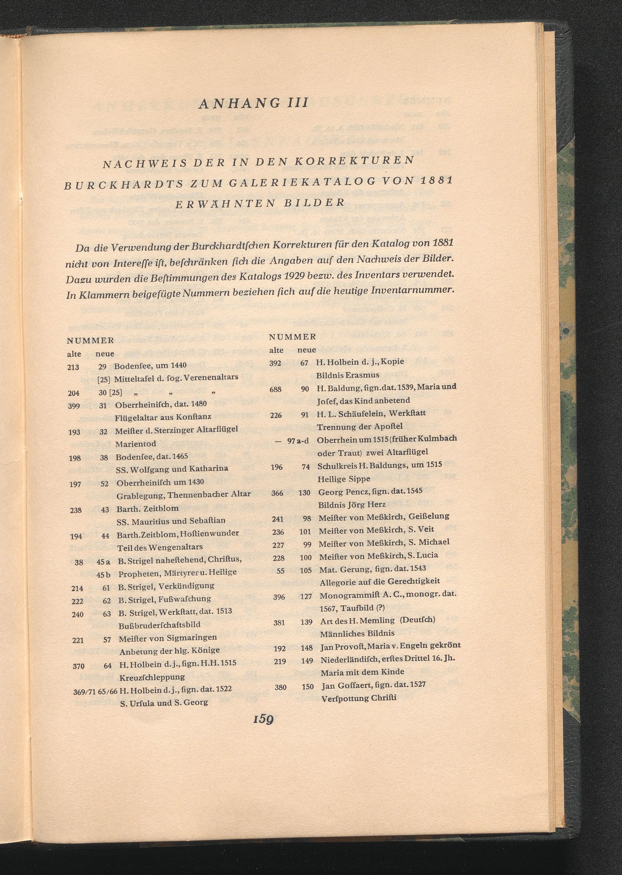 Anhang III : Nachweis der in den Korrekturen Burckhardts zum Galeriekatalog von 1881 erwähnten Bilder