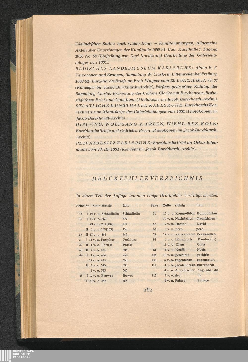 Anhang III : Nachweis der in den Korrekturen Burckhardts zum Galeriekatalog von 1881 erwähnten Bilder