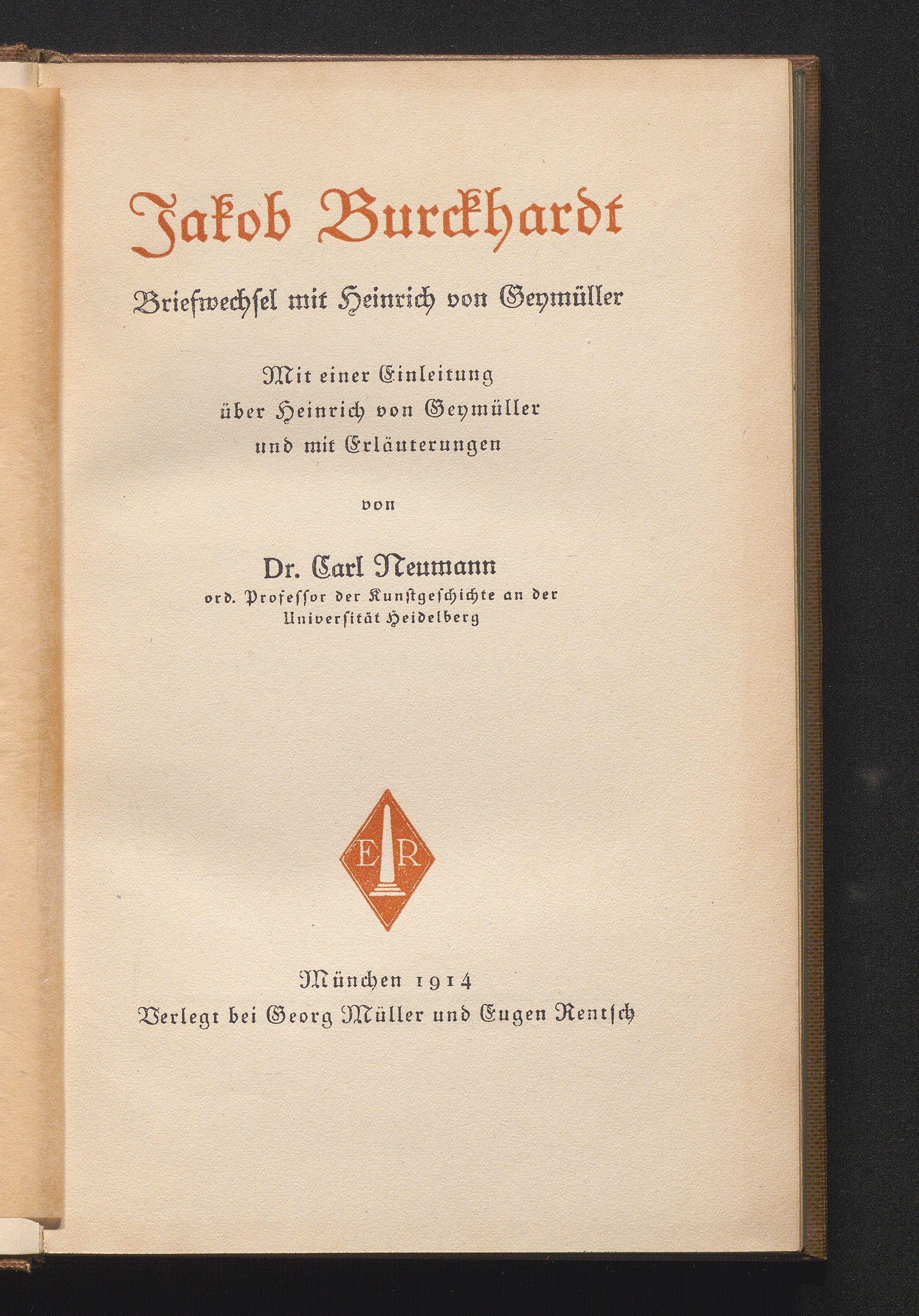 Briefwechsel mit Heinrich von Geymüller / Jacob Burckhardt. Mit einer Einleitung über Heinrich von Geymüller und mit Erläuterungen von Carl Neumann