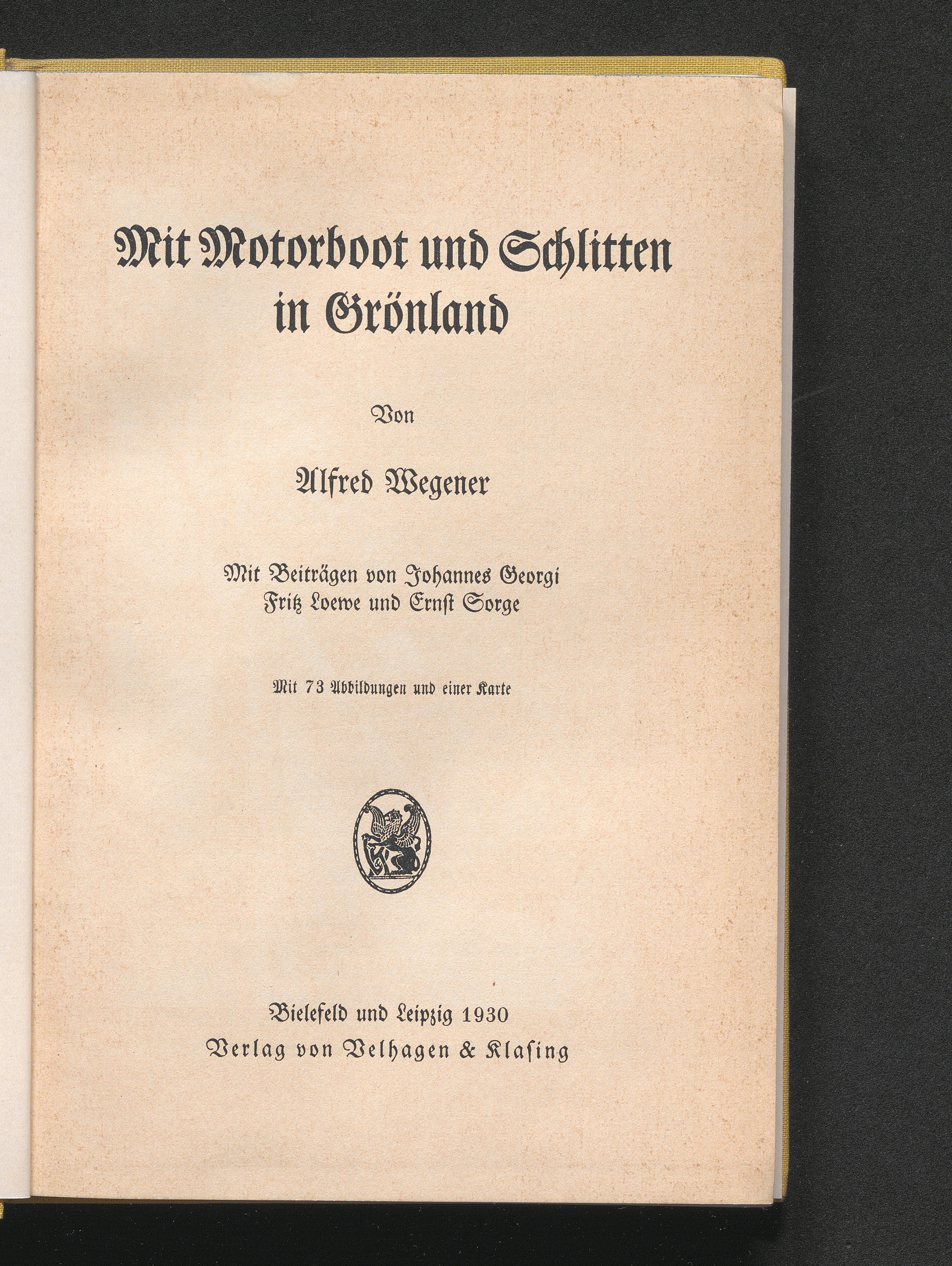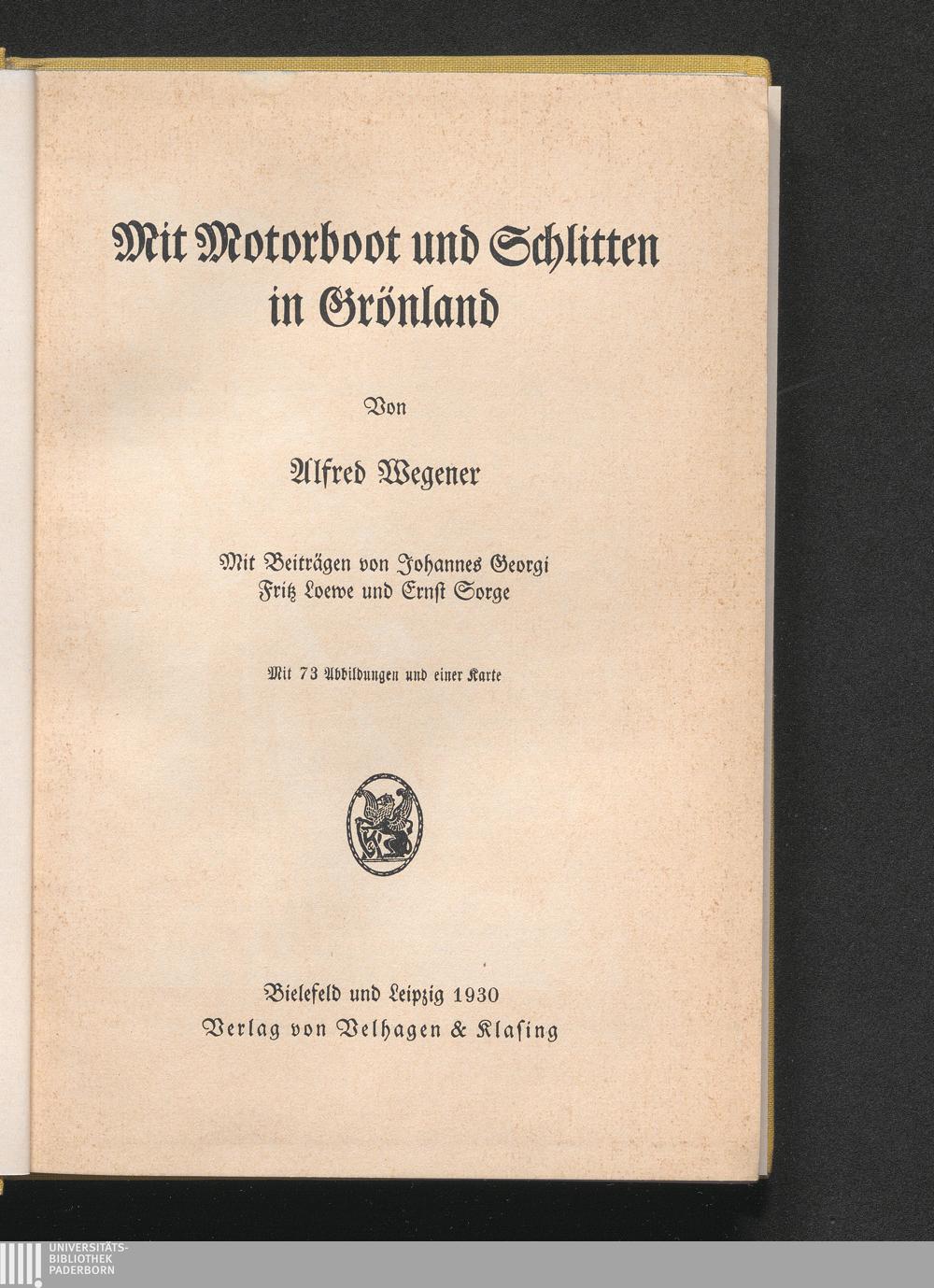 Mit Motorboot und Schlitten in Grönland : mit 73 Abbildungen und einer Karte / von Alfred Wegener. Mit Beiträgen von Johannes Georgi, Fritz Loewe und Ernst Sorge