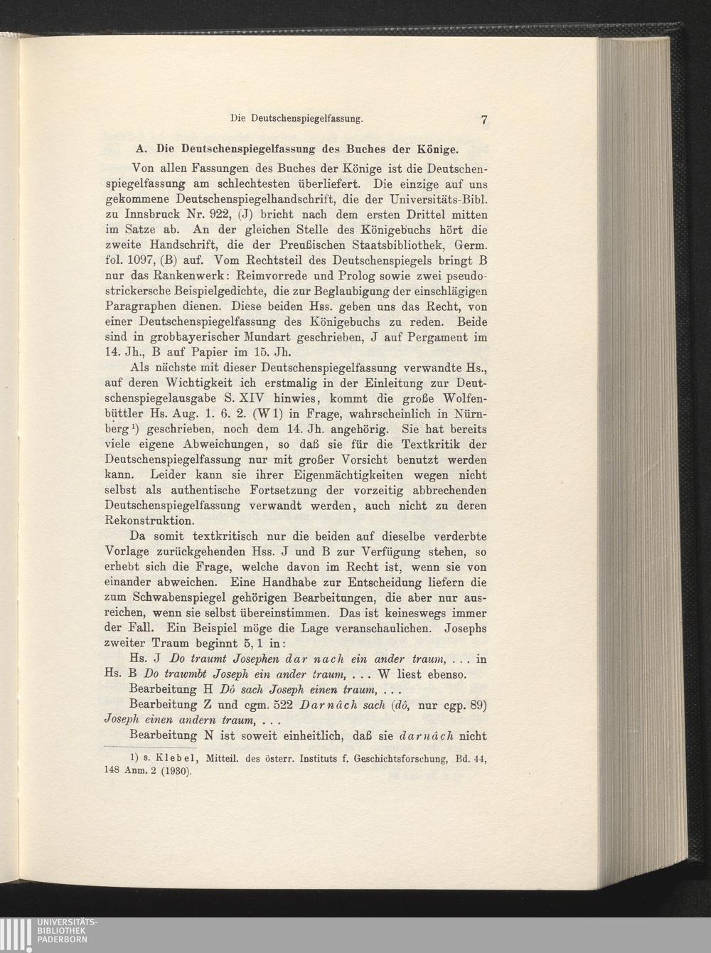 A. Die Deutschenspiegelfassung des Buches der Könige.