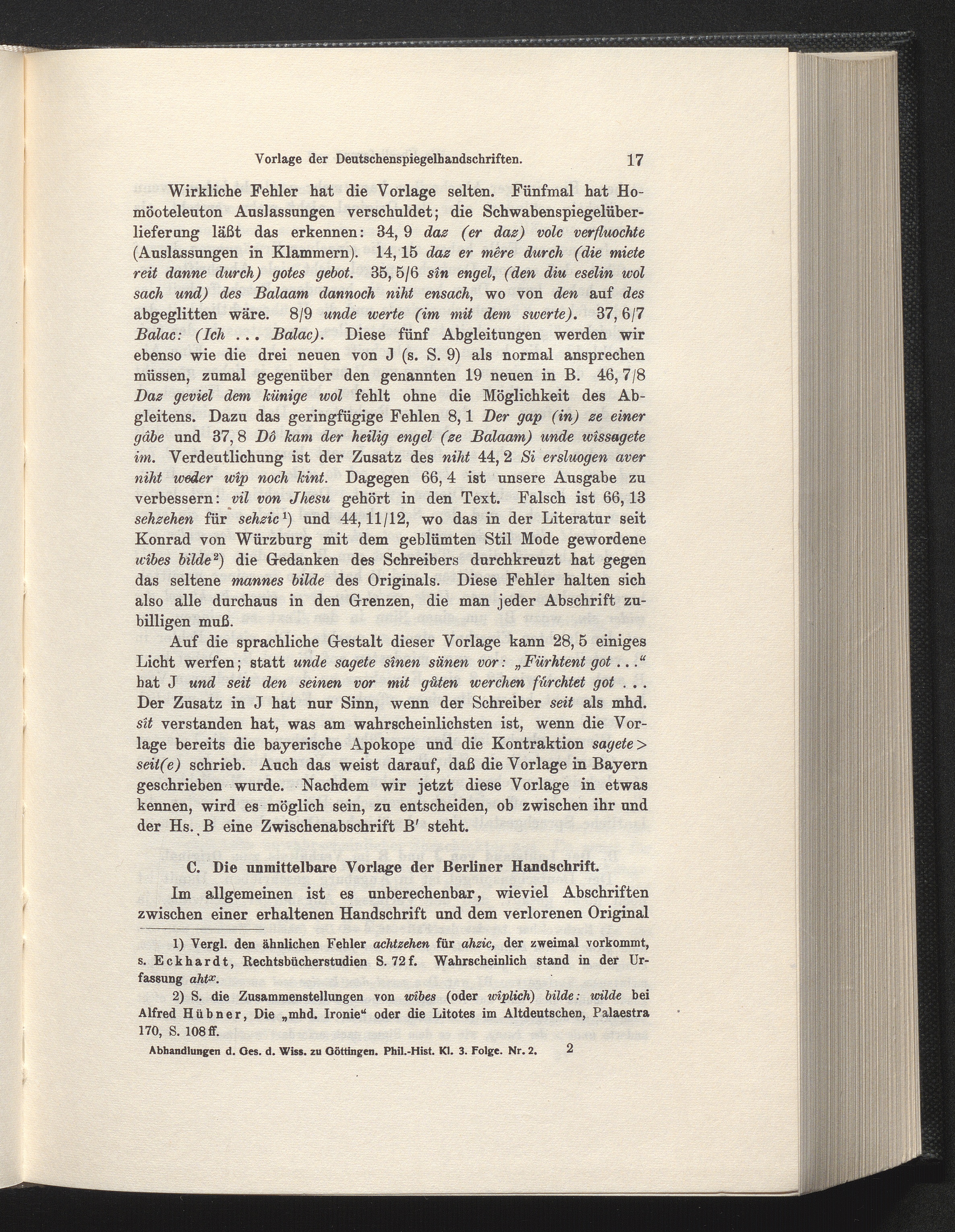 C. Die unmittelbare Vorlage der Berliner Handschrift.
