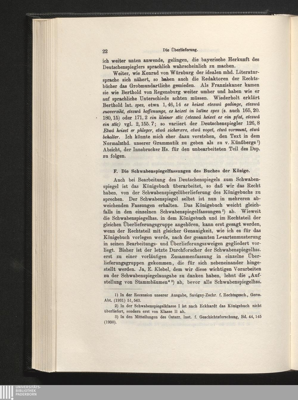 F. Die Schwabenspiegelfassungen des Buches der Könige.