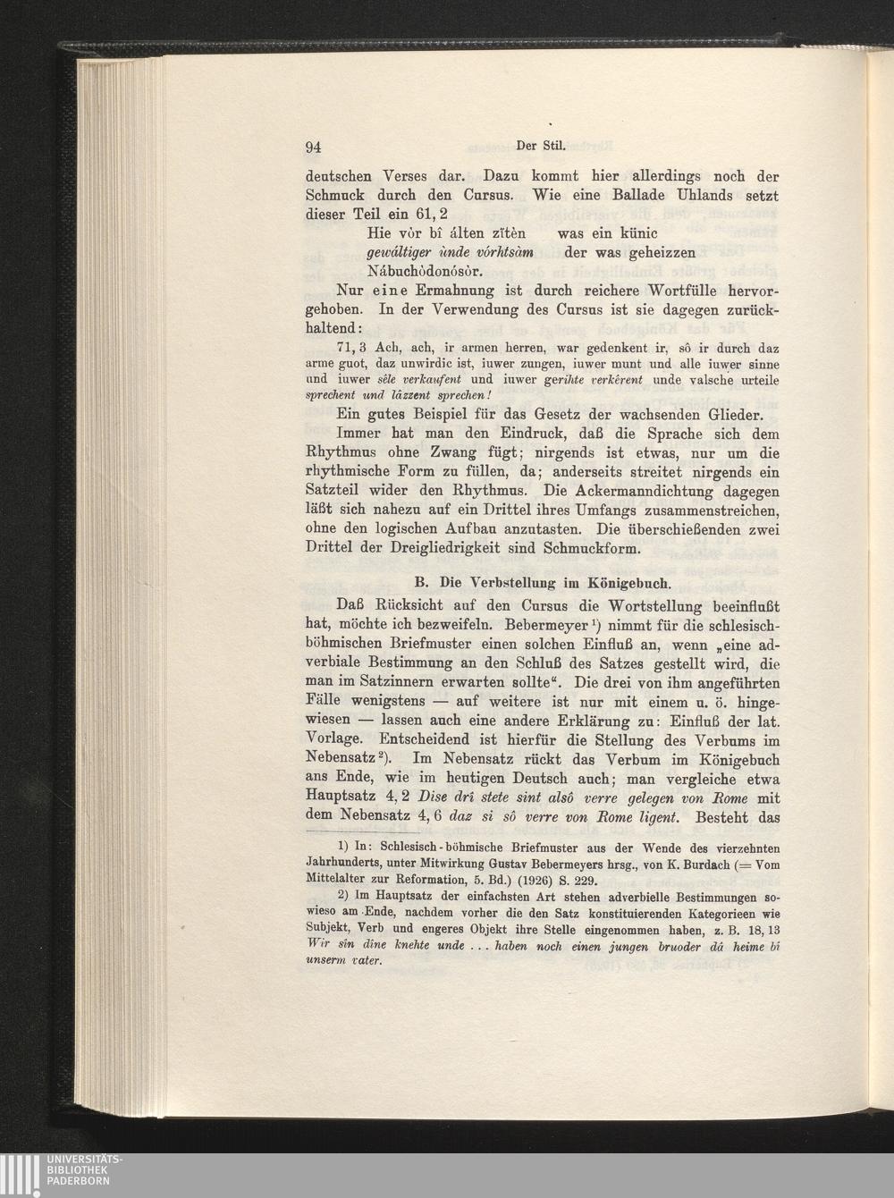 B. Die Verbstellung im Königebuch.