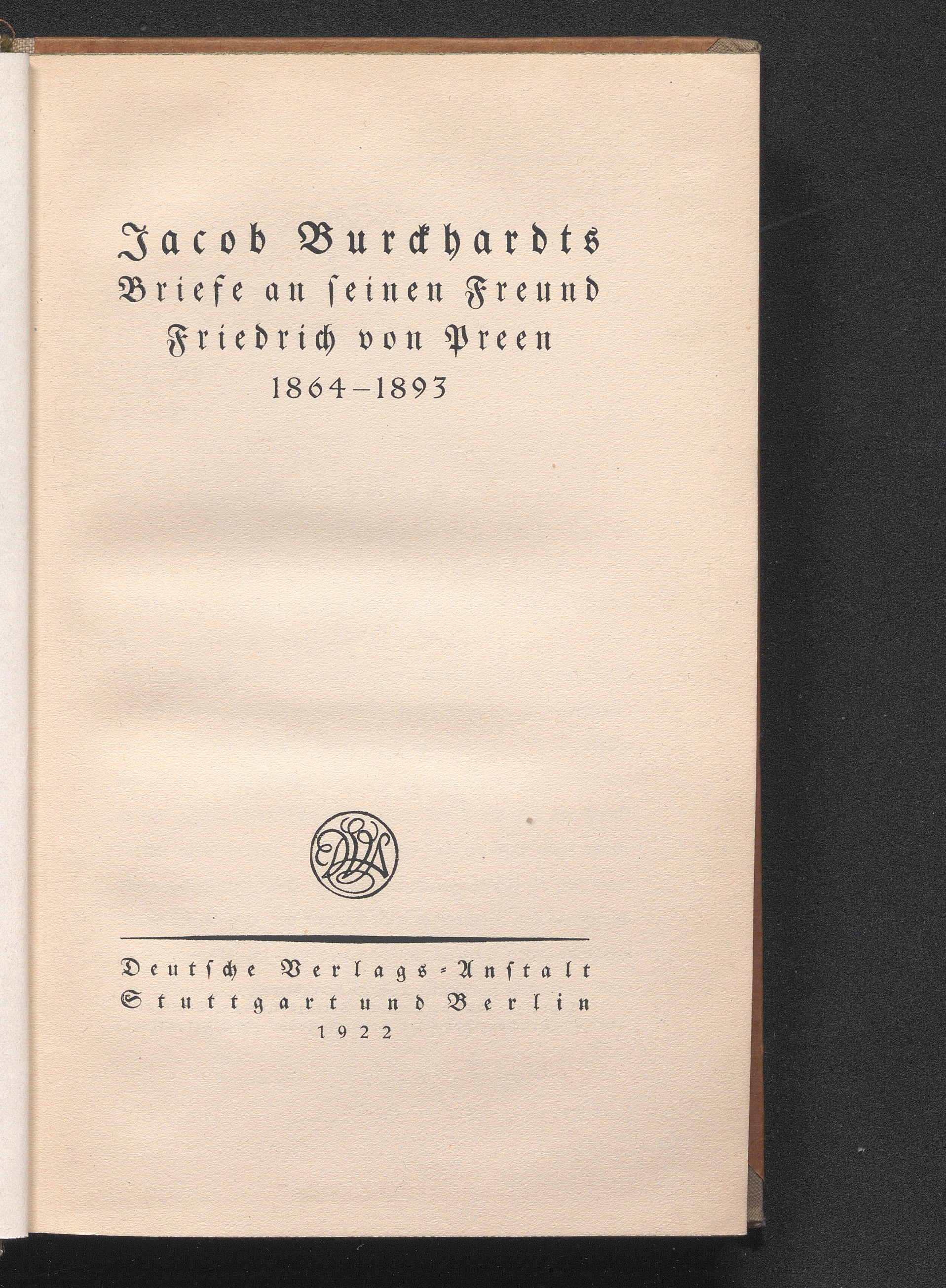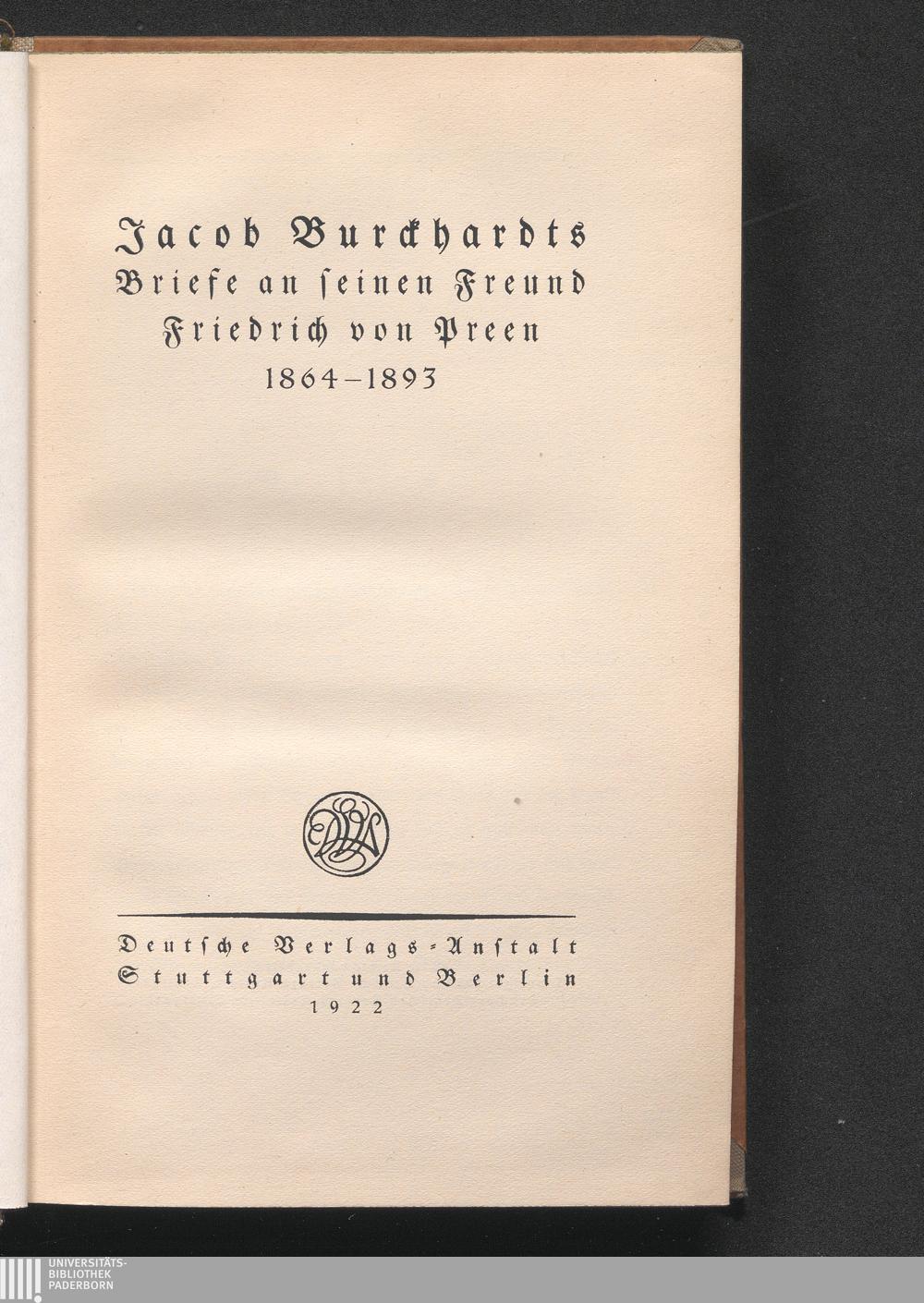 Jacob Burckhardts Briefe an seinen Freund Friedrich von Preen 1864 - 1893 / [Hrsg. von Emil Strauss]