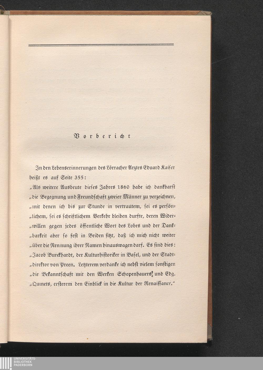 Jacob Burckhardts Briefe an seinen Freund Friedrich von Preen 1864 - 1893 / [Hrsg. von Emil Strauss]
