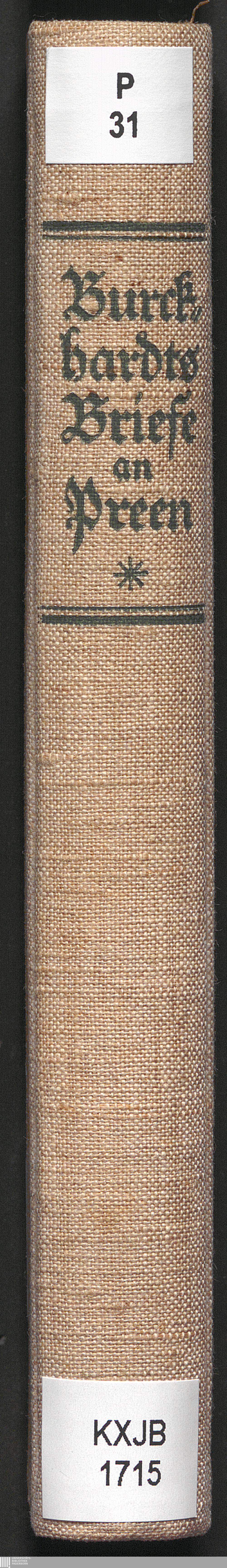 Jacob Burckhardts Briefe an seinen Freund Friedrich von Preen 1864 - 1893 / [Hrsg. von Emil Strauss]