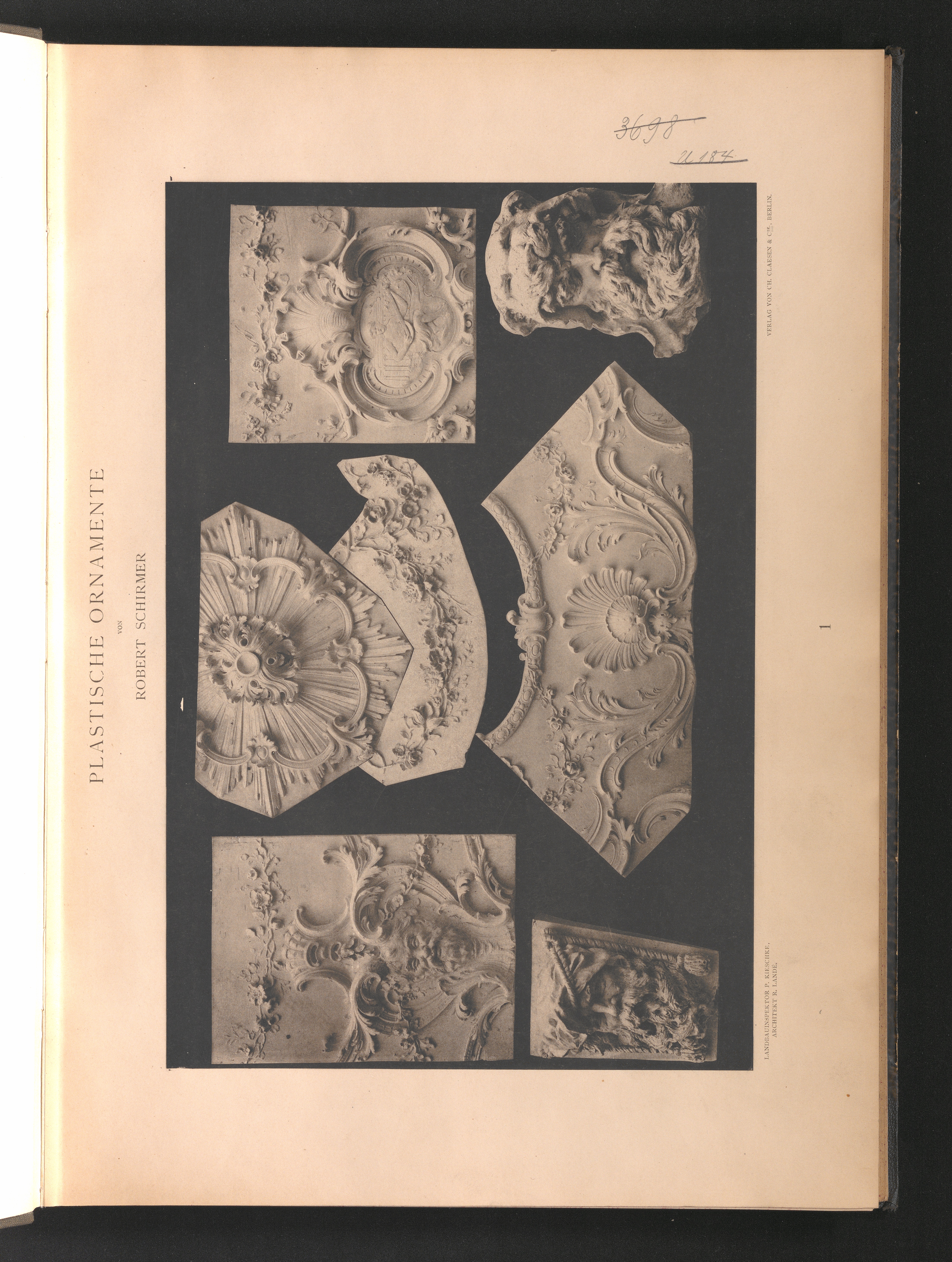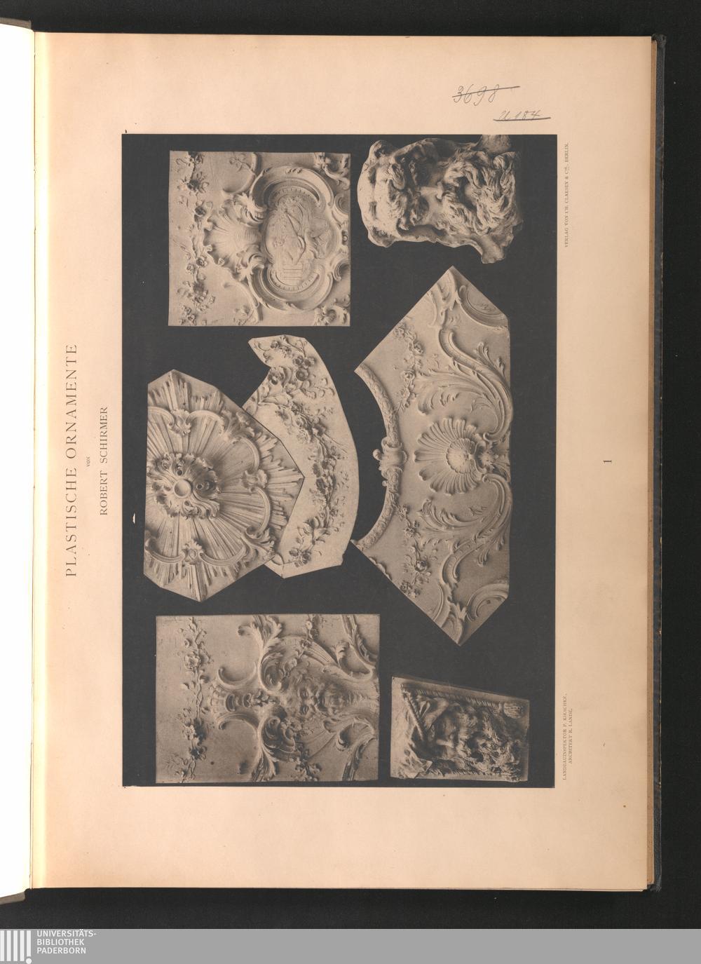 Plastische Ornamente für Bau- und Kunstgewerbe : besonders zur Verzierung von Plafonds durch anzutragenden Stuck im Style des Barock und Rococo nach Entwürfen hervorragender Architekten und nach eigenen Kompositionen ausgeführt / von Robert Schirmer