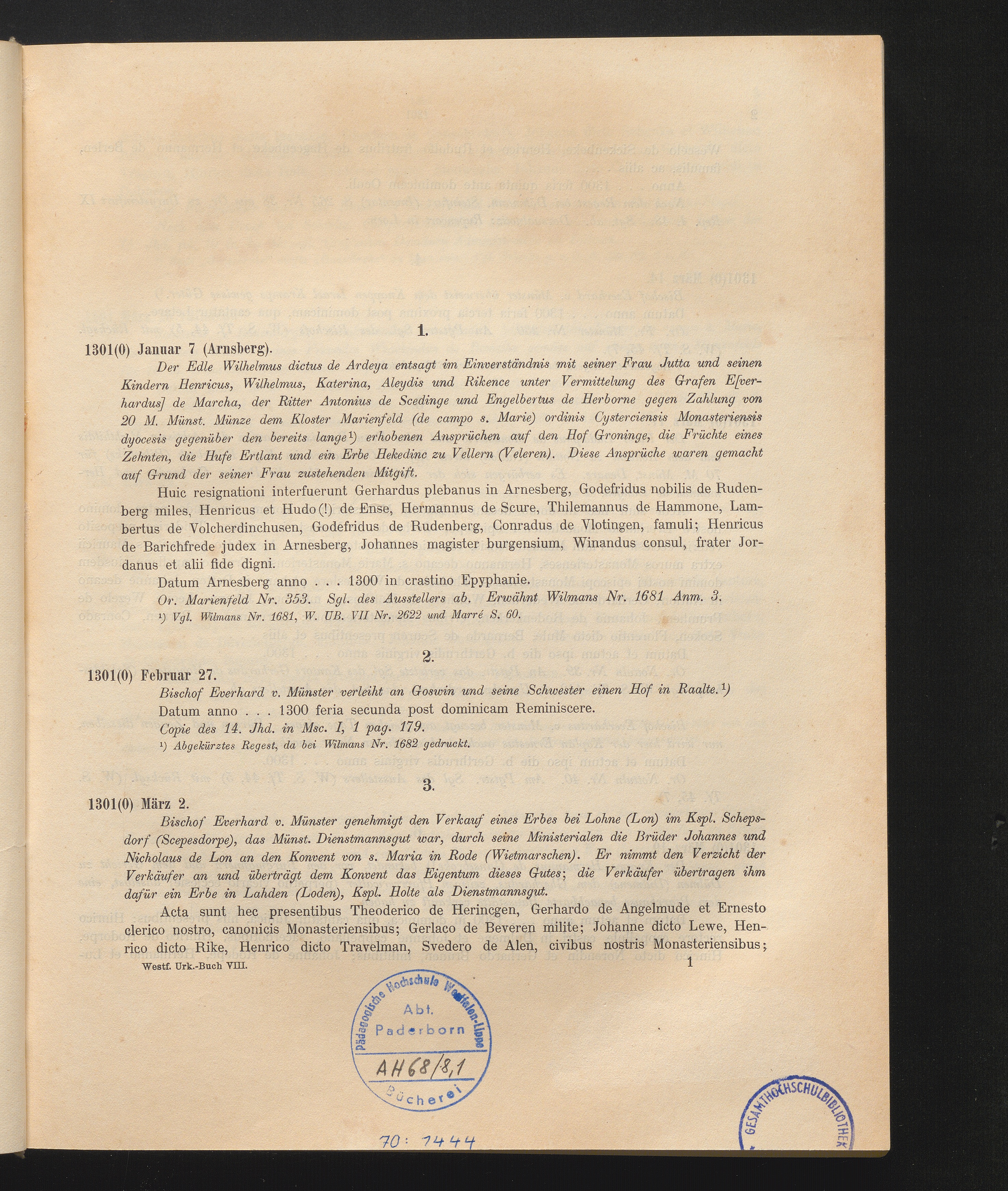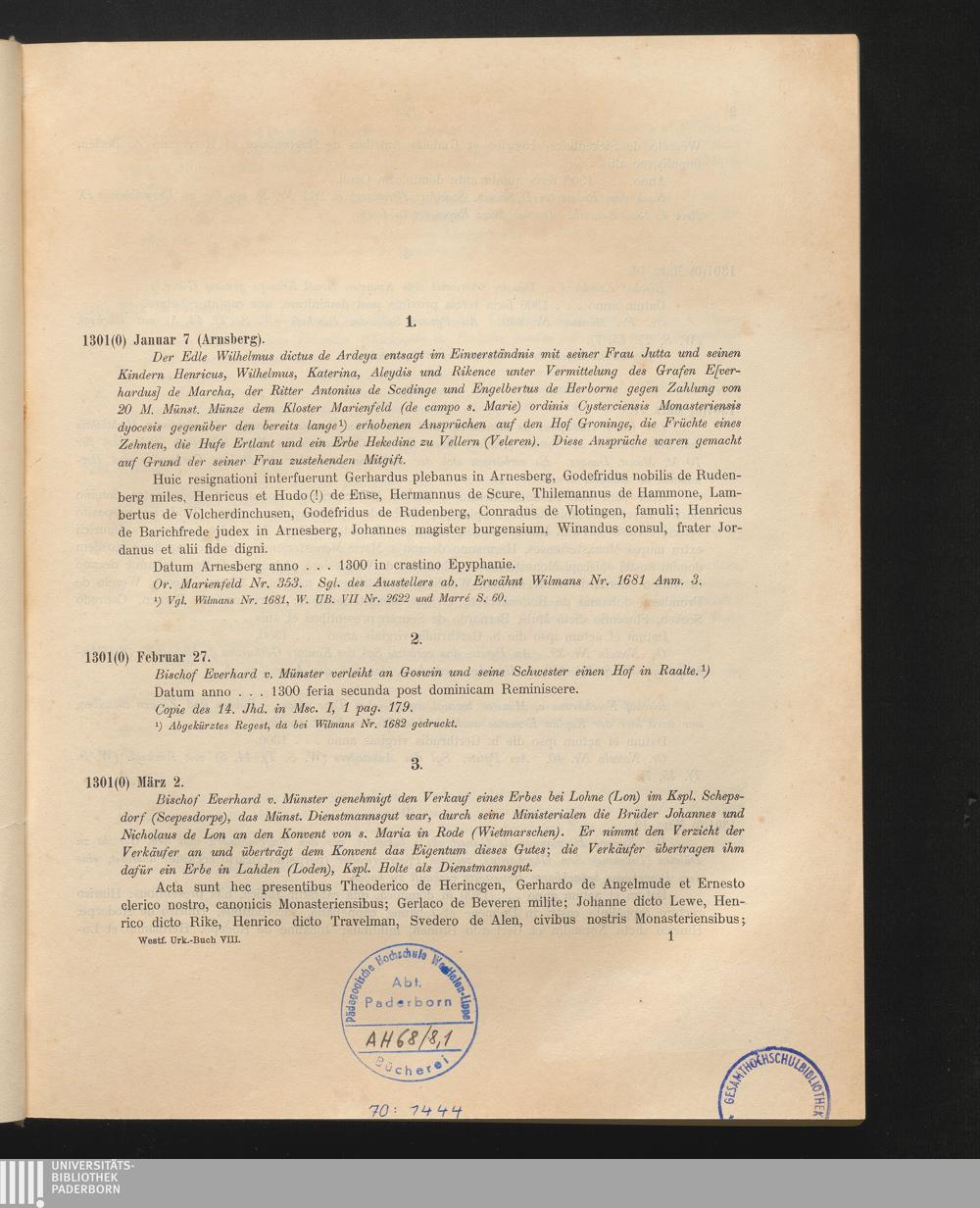 Die Urkunden des Bistums Münster von 1301 - 1325 / bearb. von R. Krumbholtz