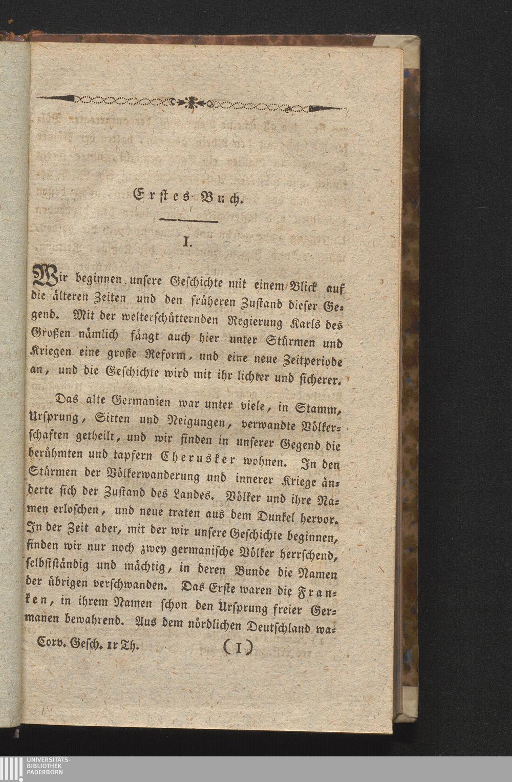 Erstes Buch. Von der Enstehung Corveys und der Stiftung, bis auf Abt Saracho, und[...]