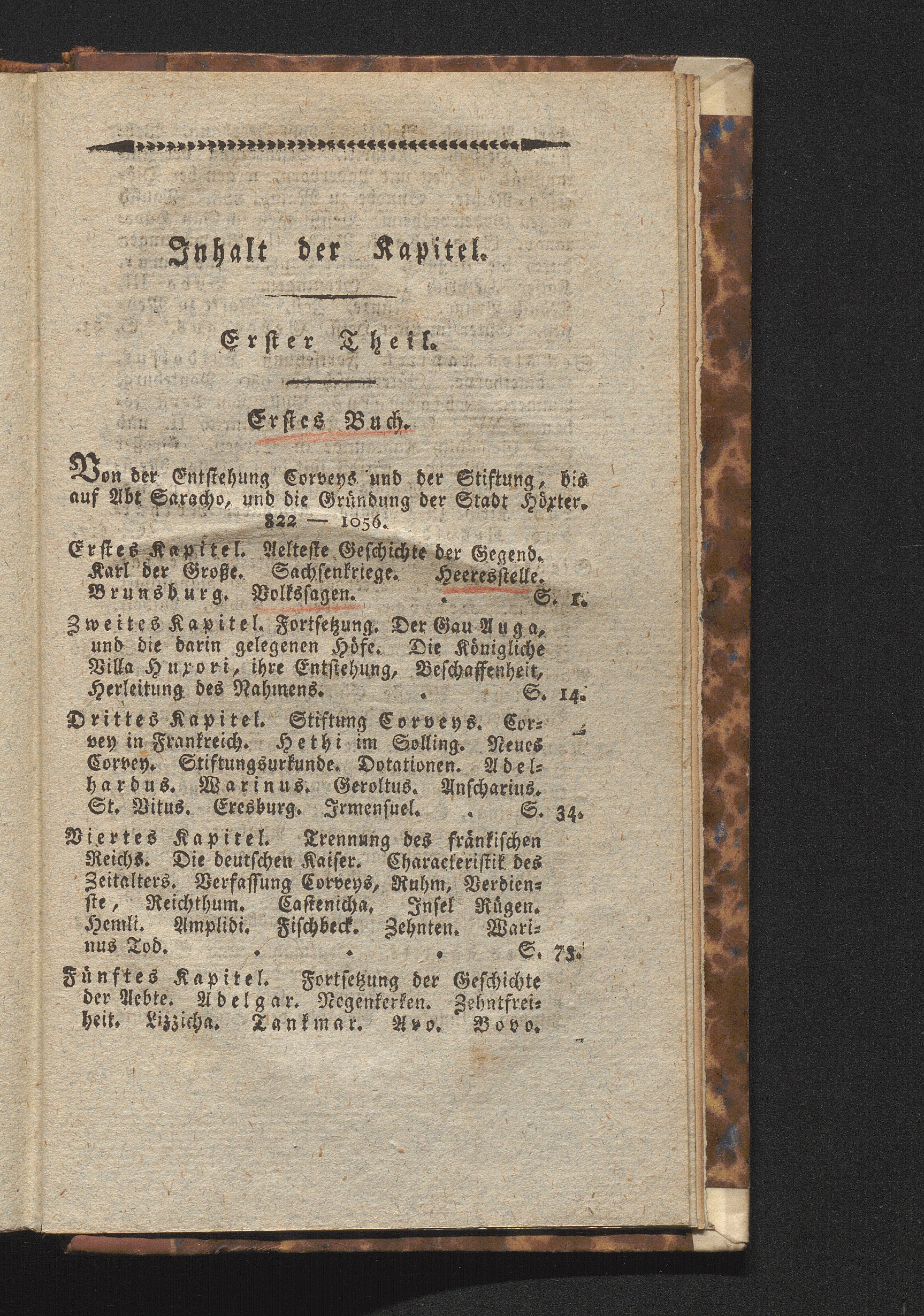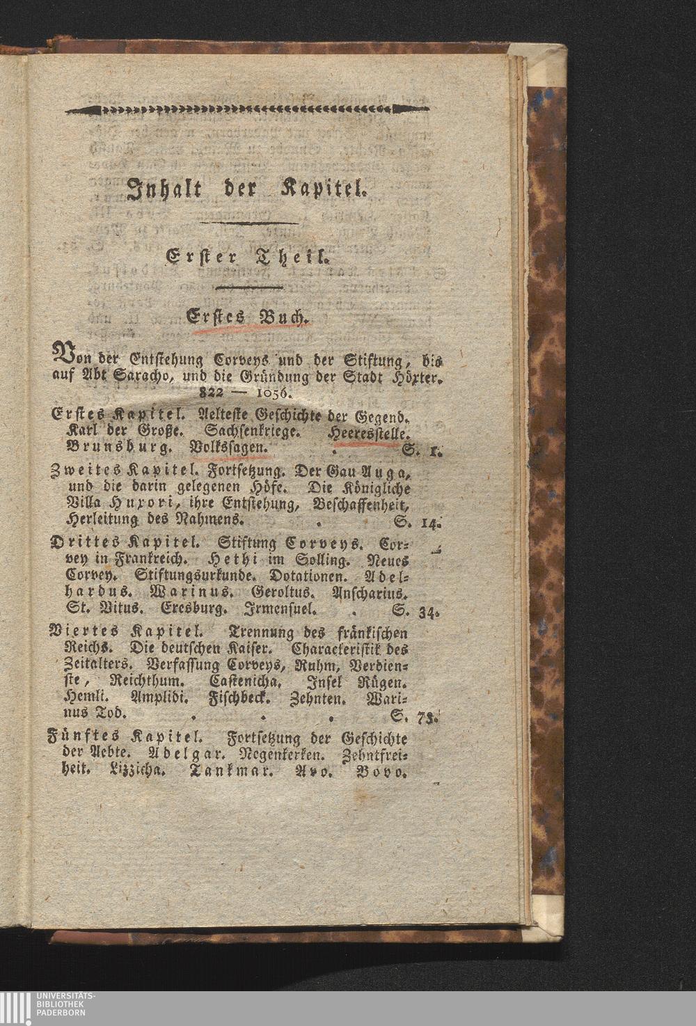 Erstes Kapitel. Saracho. Otto und Bruno. Corvey an das Erzstift Bremen geschenkt. Werner. Bernhardus. Zehnten. Kirche auf dem Heiligenberge. Fretherikus. Seine Absetzung. Marcwardus. Bisthum Osnabrück. Heinricus. Waramundus. Thiatmarus. Brüderschaft des heiligen Vitus. Bursfelde. Windolphus. Hildelinus. Jburg, Abt Günther von Hersfeld. Kreuzzüge.