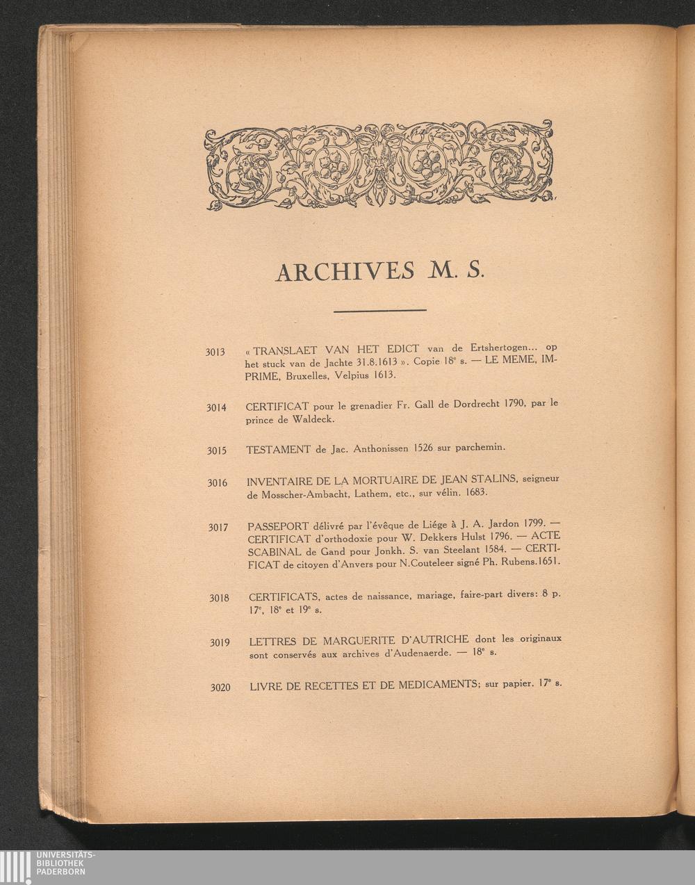 Archives M. S.