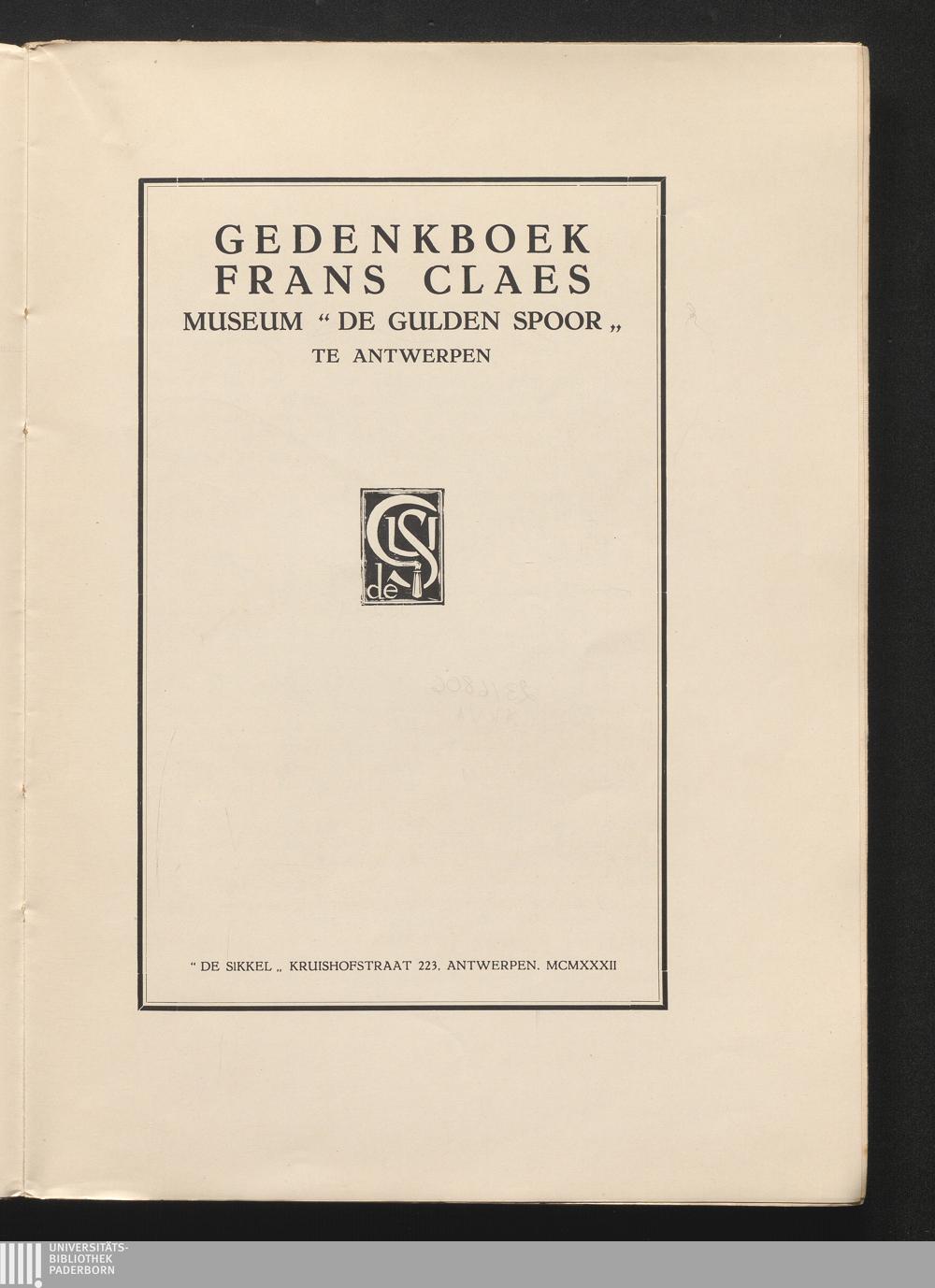 Gedenkboek Frans Claes : Museum "De Gulden Spoor" te Antwerpen / [voorwoord Jan Denucé]