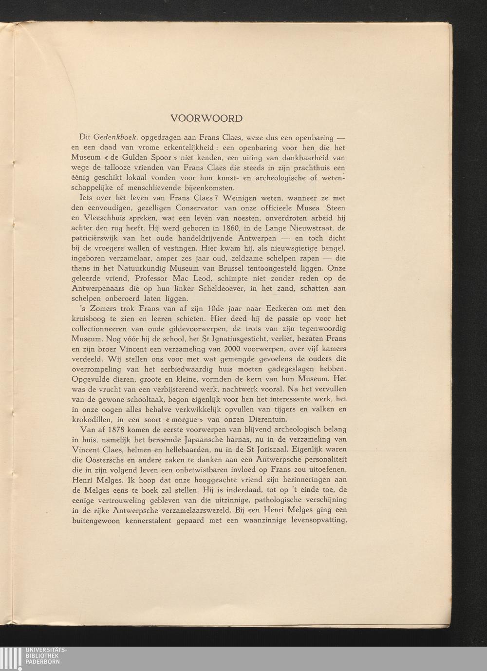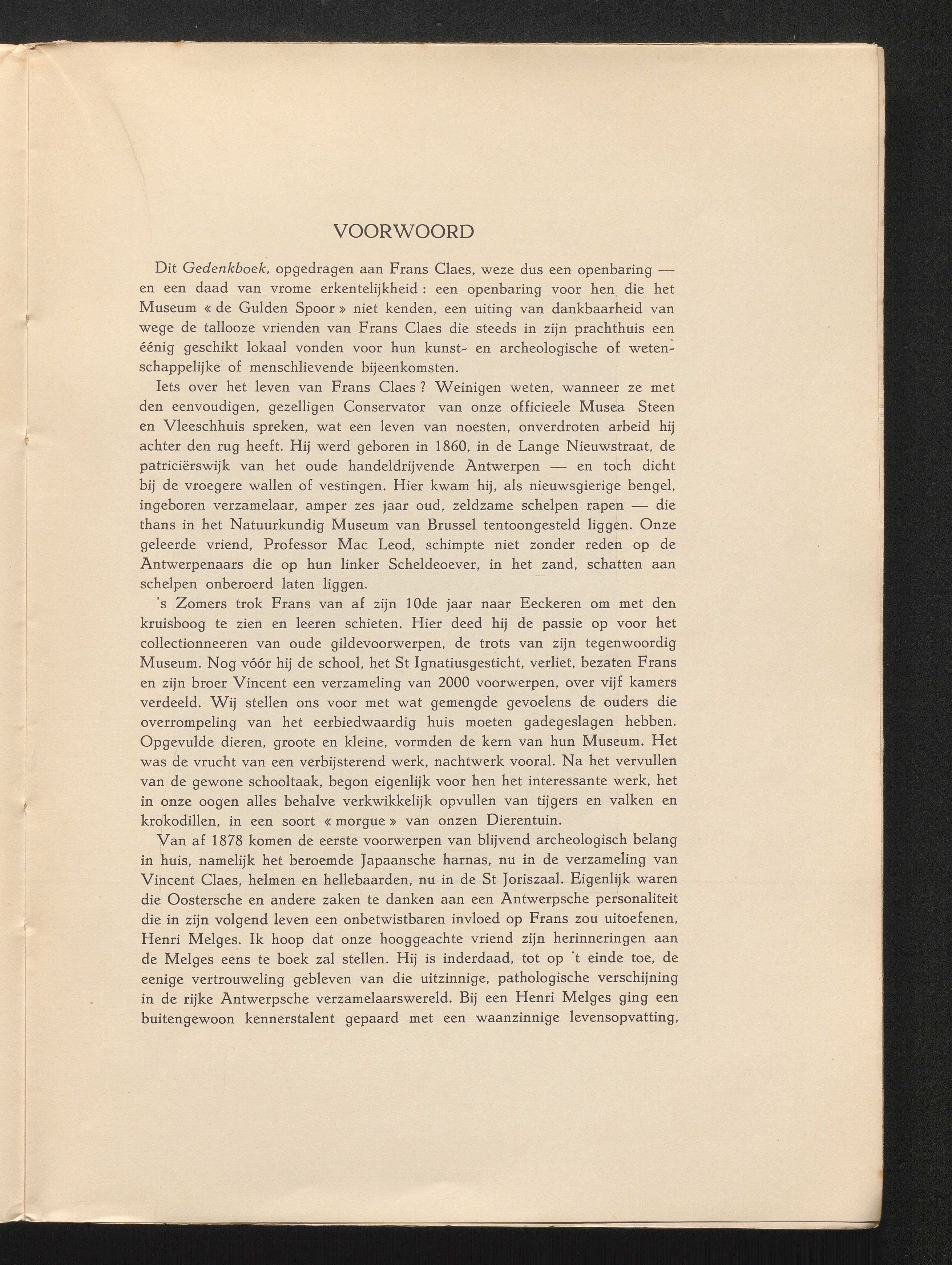 Gedenkboek Frans Claes : Museum "De Gulden Spoor" te Antwerpen / [voorwoord Jan Denucé]