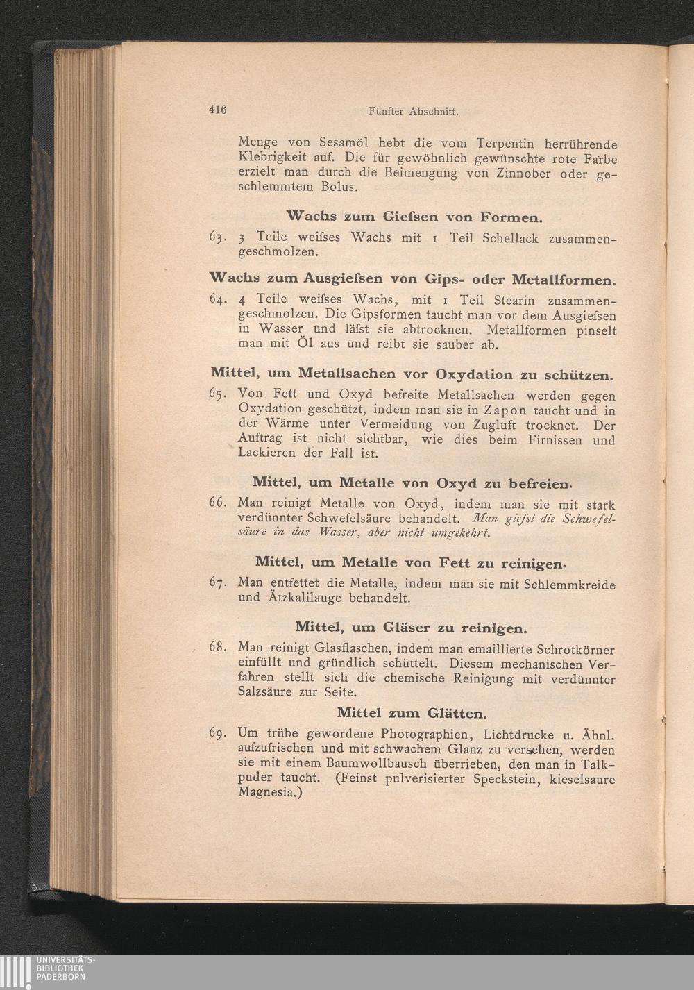 Fünfter Abschnitt. Rezepte und Anweisungen