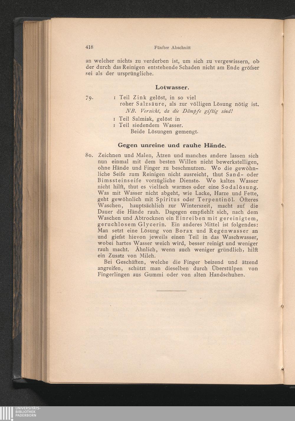 Fünfter Abschnitt. Rezepte und Anweisungen