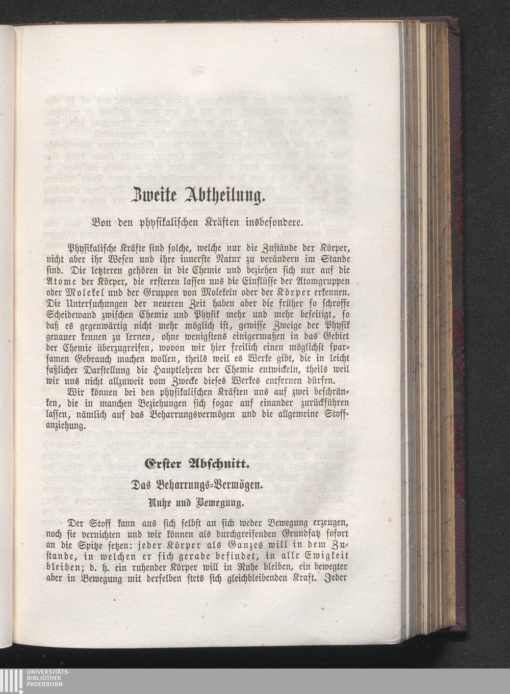 Zweite Abtheilung. Von den physikalischen Kräften insbesondere.