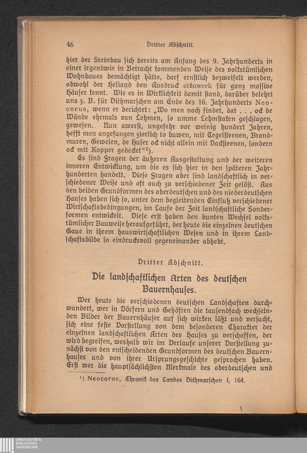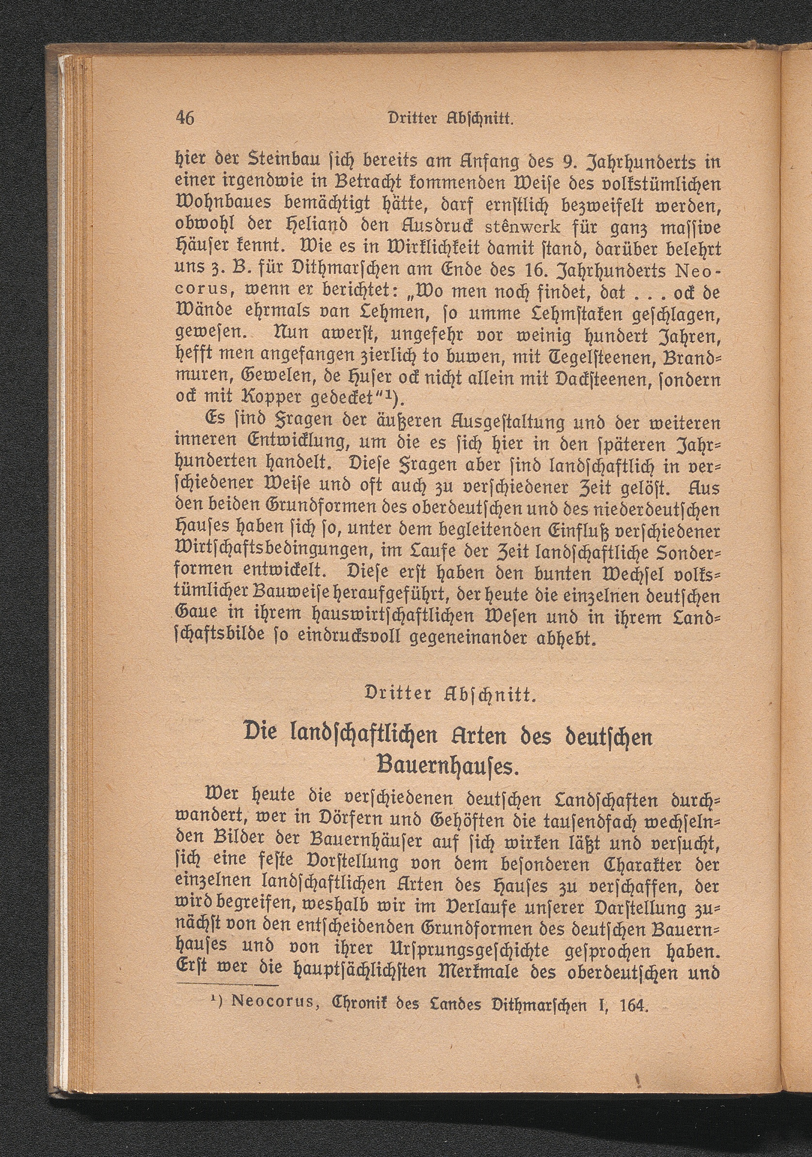 Dritter Abschnitt: Die landschaftlichen Arten des deutschen Bauernhauses.