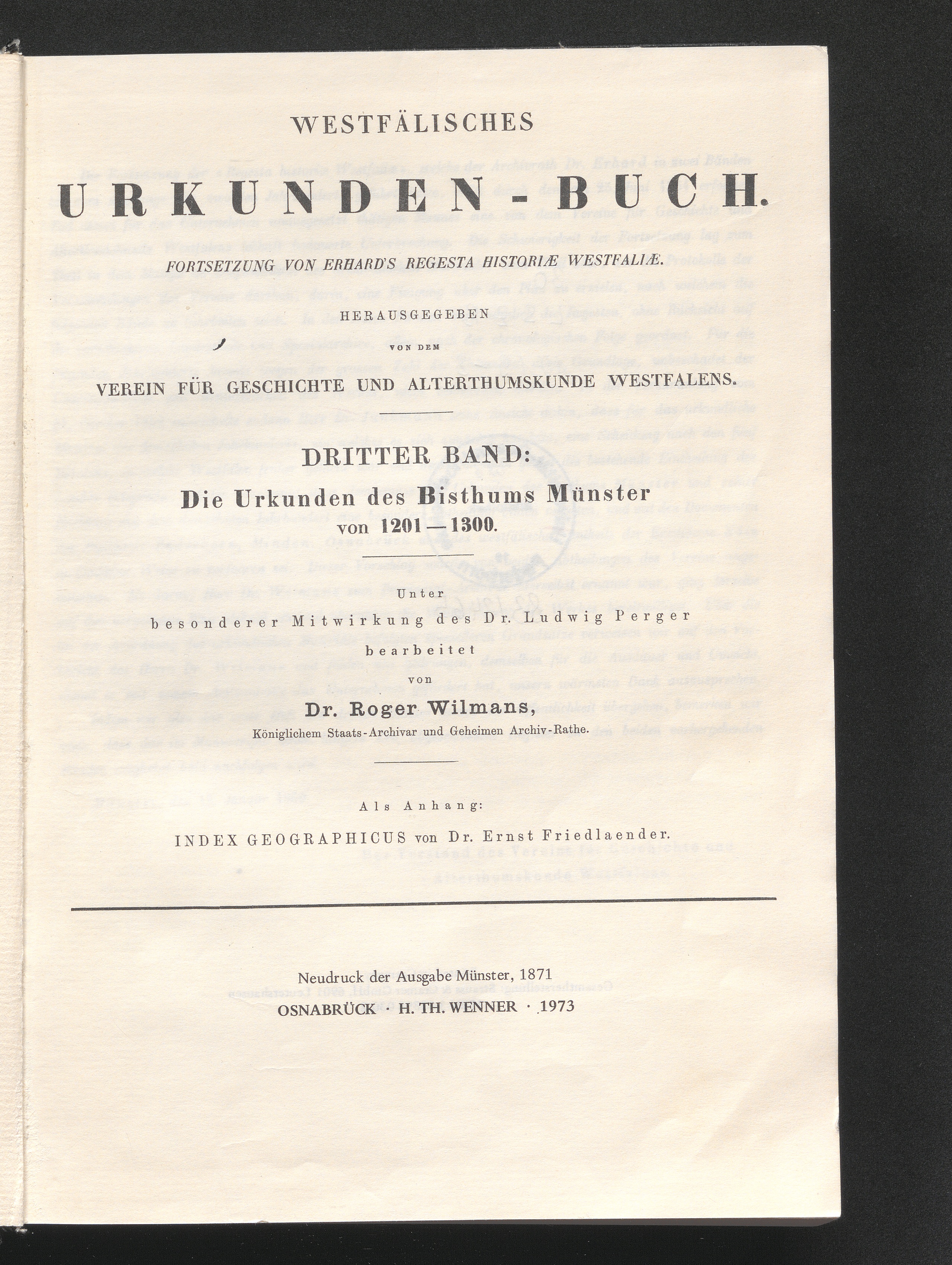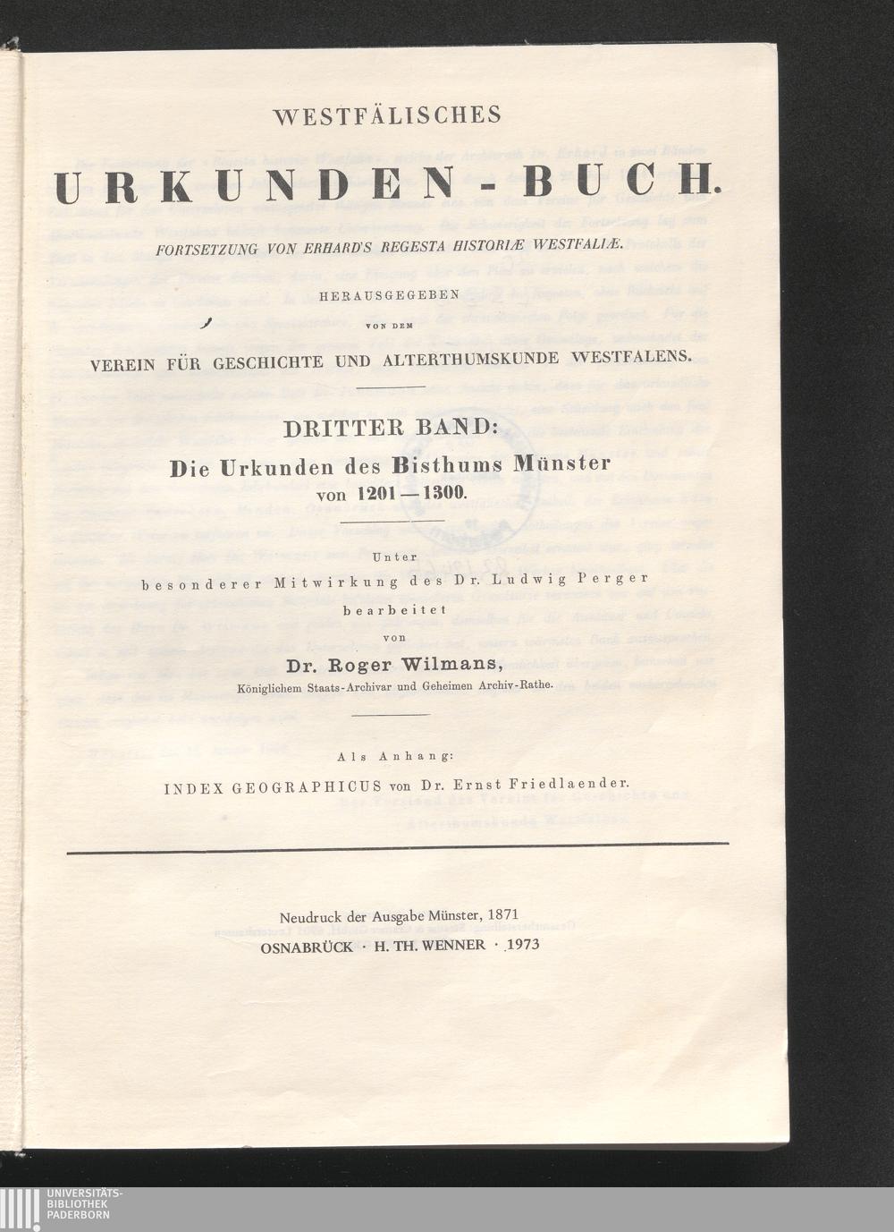 Index Geographicus Glossar Und Siegelverzeichniss Zu R. Wilmans Westfälischem Urkunden-Buche Band III. A. Bisthum Münster.