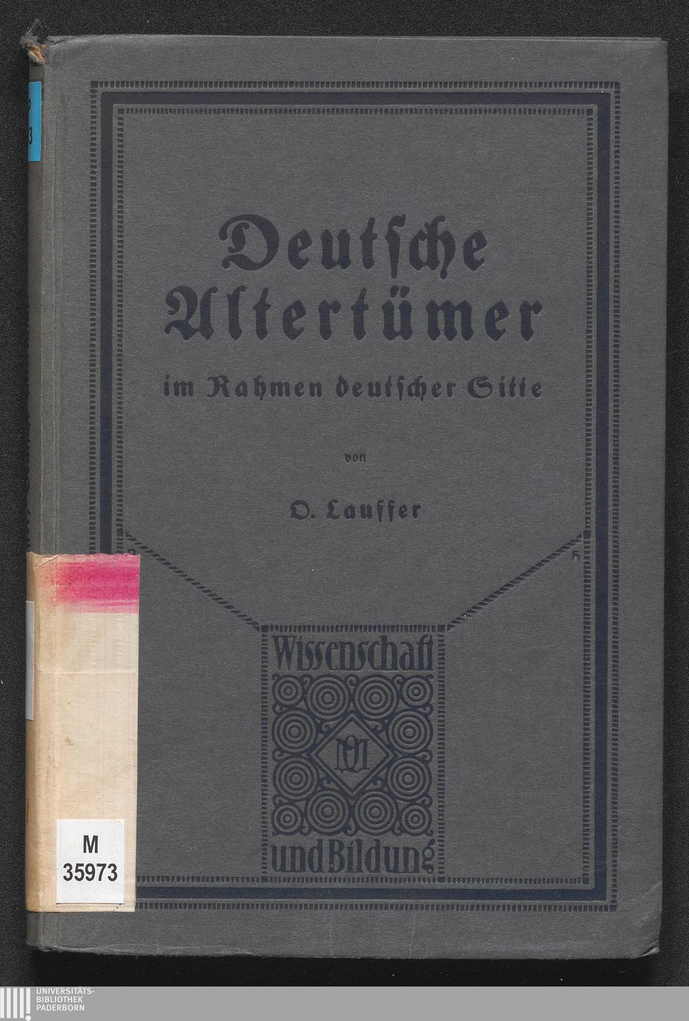 Deutsche Altertümer im Rahmen deutscher Sitte : eine Einführung in die deutsche Altertumswissenschaft / von Otto Lauffer