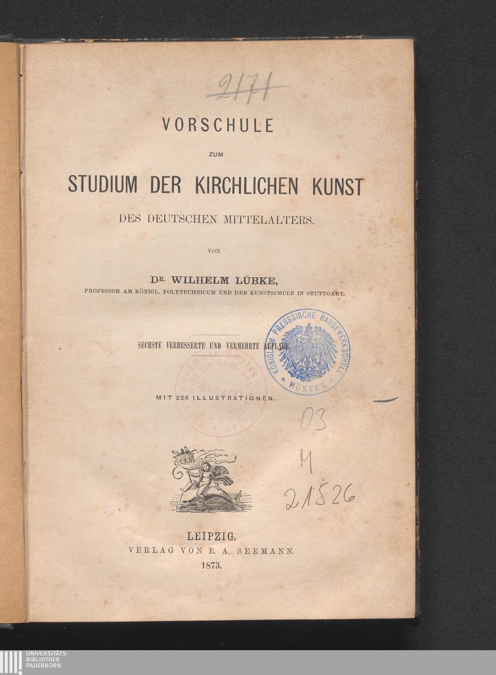 Vorschule zum Studium der kirchlichen Kunst des deutschen Mittelalters / von Wilhelm Lübke