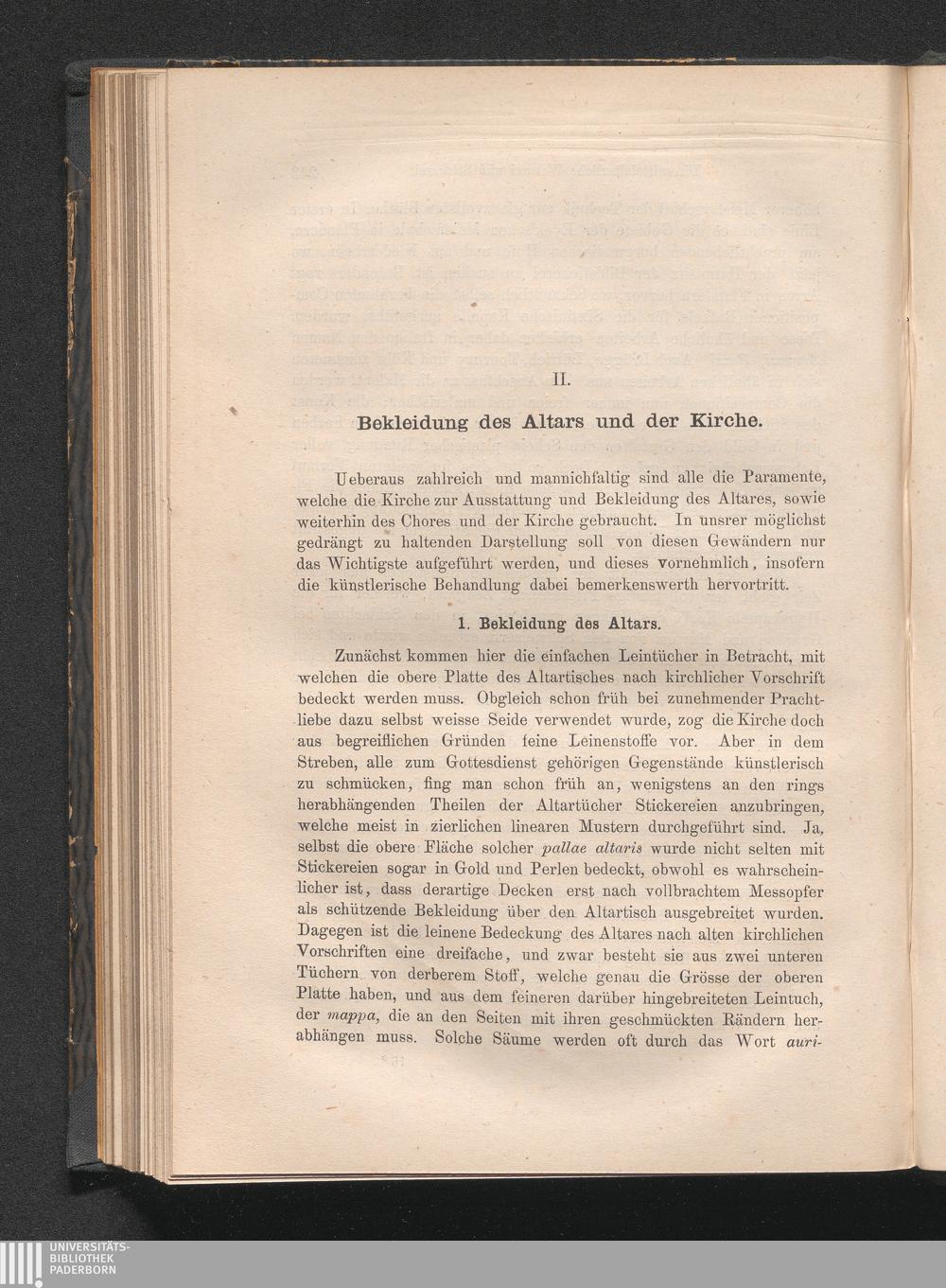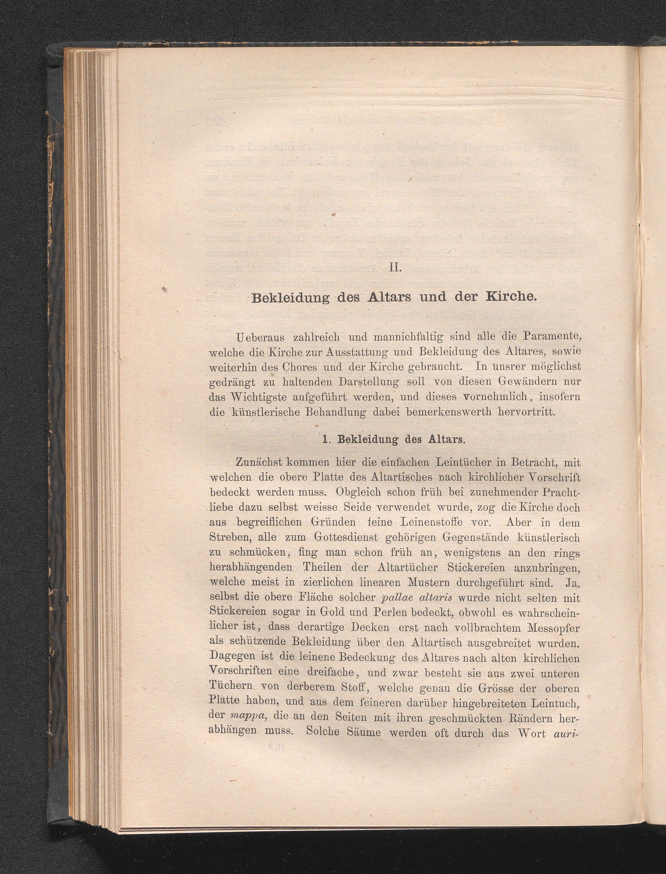 II. Bekleidung des Altars und der Kirche.