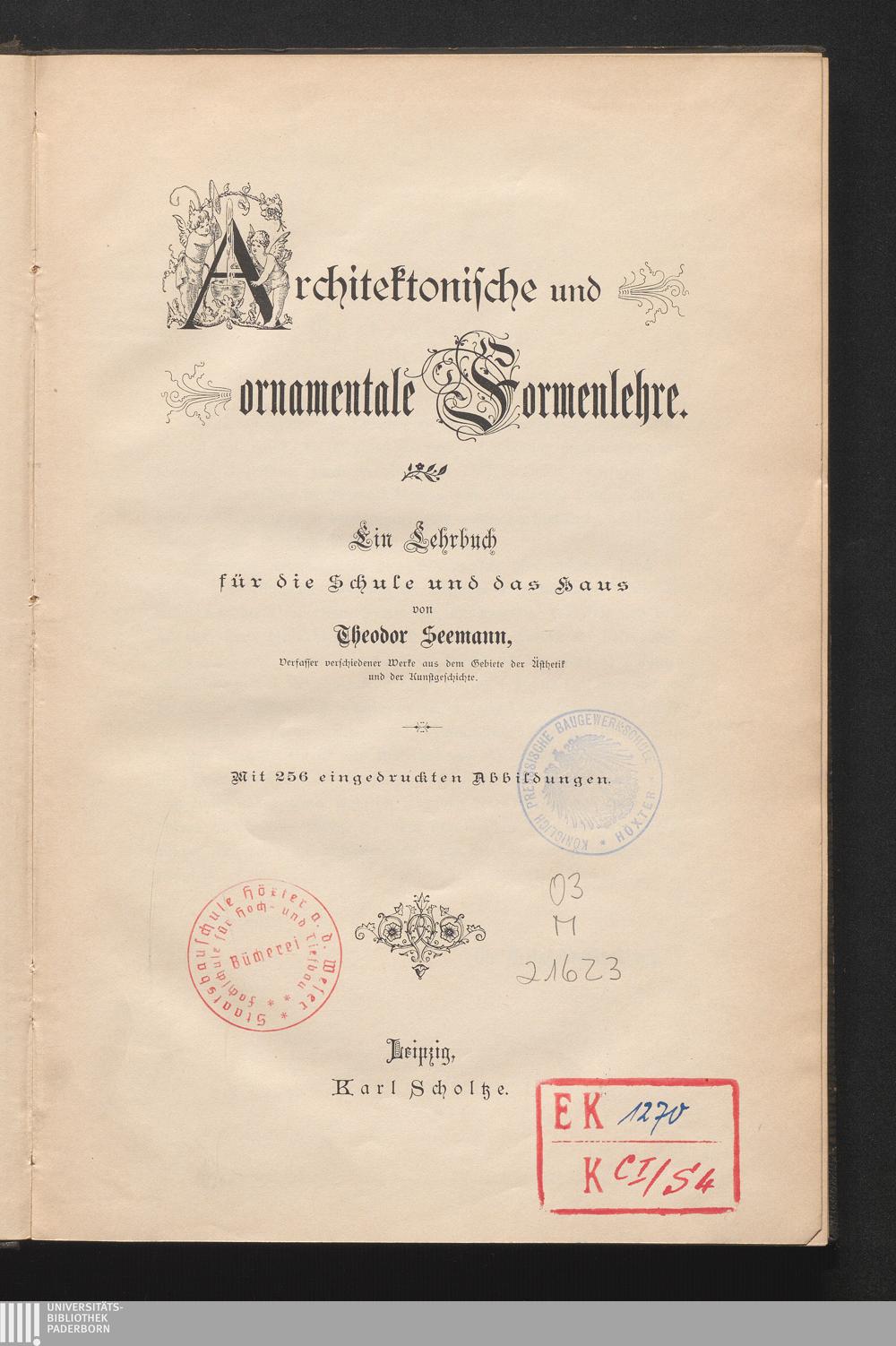 Architektonische und ornamentale Formenlehre : ein Lehrbuch für die Schule und das Haus / von Theodor Seemann