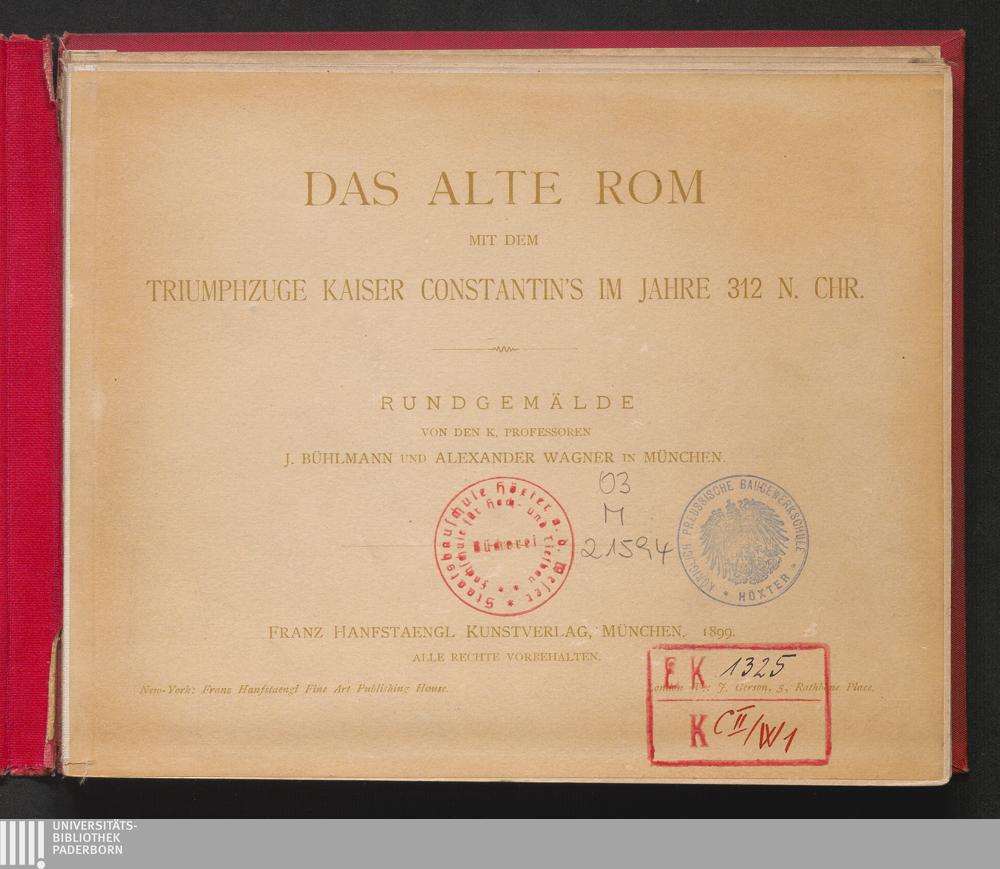 Das alte Rom : mit dem Triumphzuge Kaiser Constantin's im Jahre 312 n. Chr. / Rundgemälde von den K. Professoren J. Bühlmann und Alexander Wagner in München