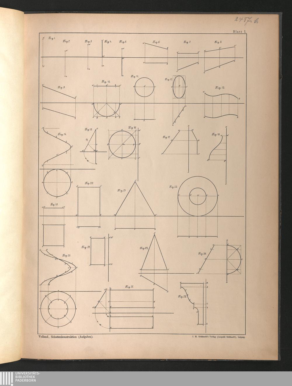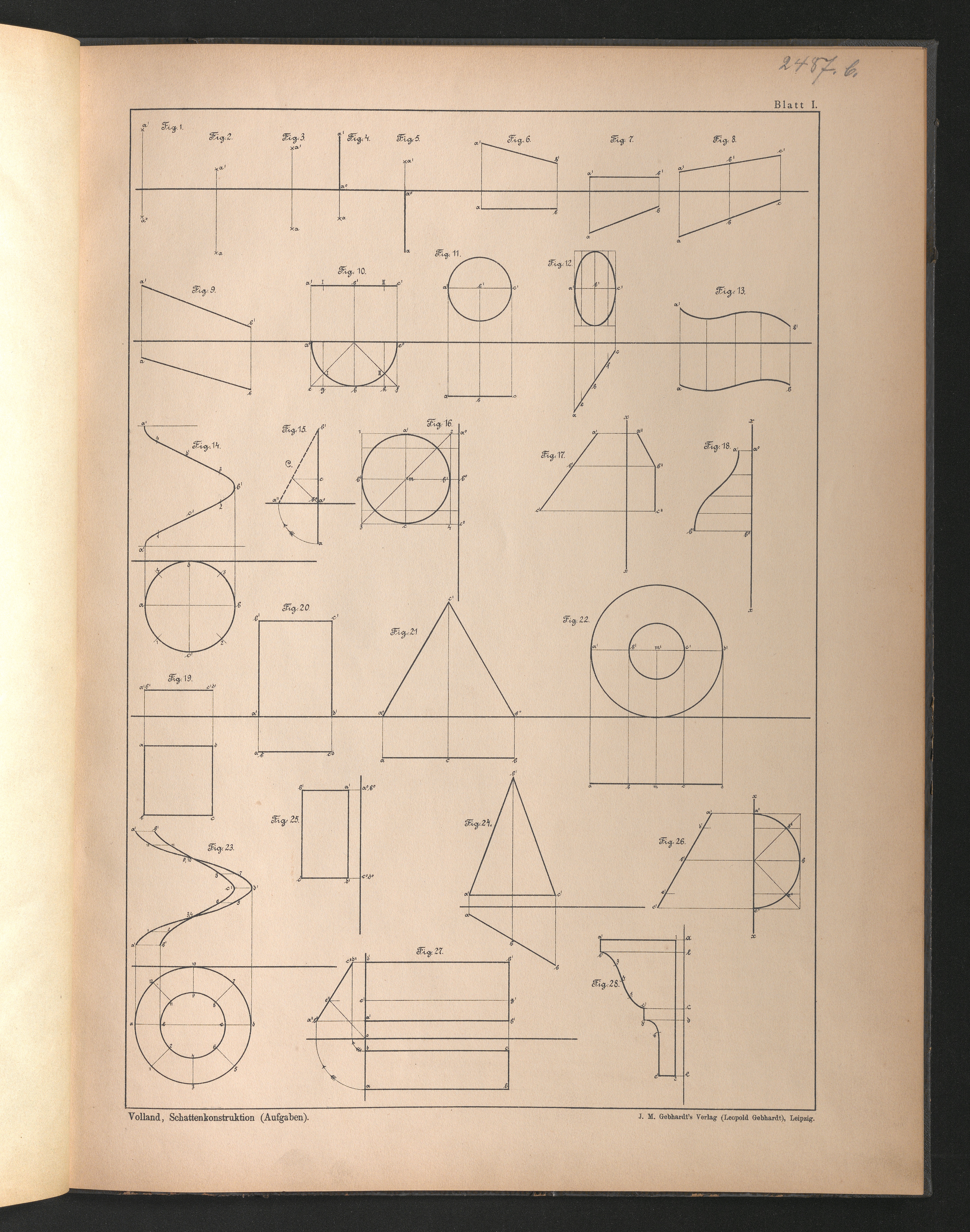 Aufgabensammlung für die architektonische Schattenlehre : zum Gebrauch an technischen und gewerblichen Lehr-Anstalten / bearb. von Conrad Volland