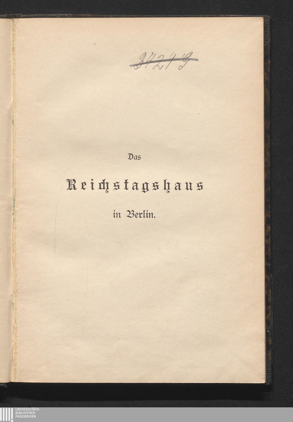 Das Reichstagshaus in Berlin : eine Darstellung der Baugeschichte und der künstlerischen Ausgestaltung des Hauses / von Maximilian Rapsilber