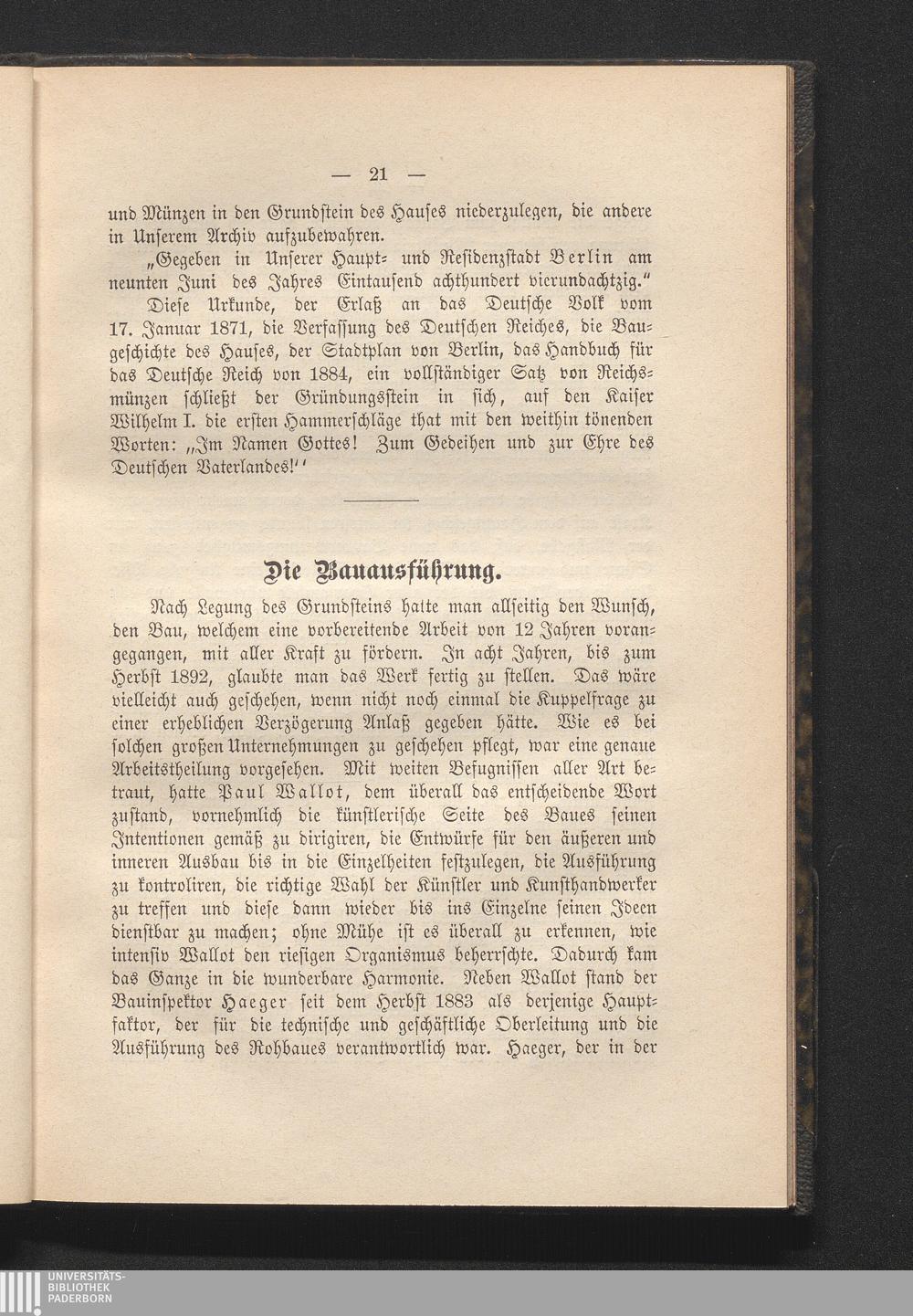 [Bildniß des Erbauers Paul Wallot]