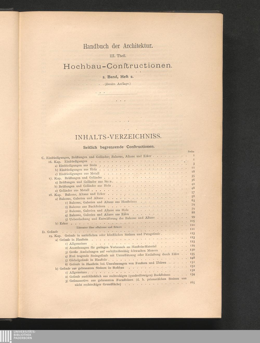 Einfriedungen, Brüstungen, Geländer, Balcone, Altane, Erker, Gesimse / von Franz Ewerbeck, Ed. Schmitt und Adolf Göller