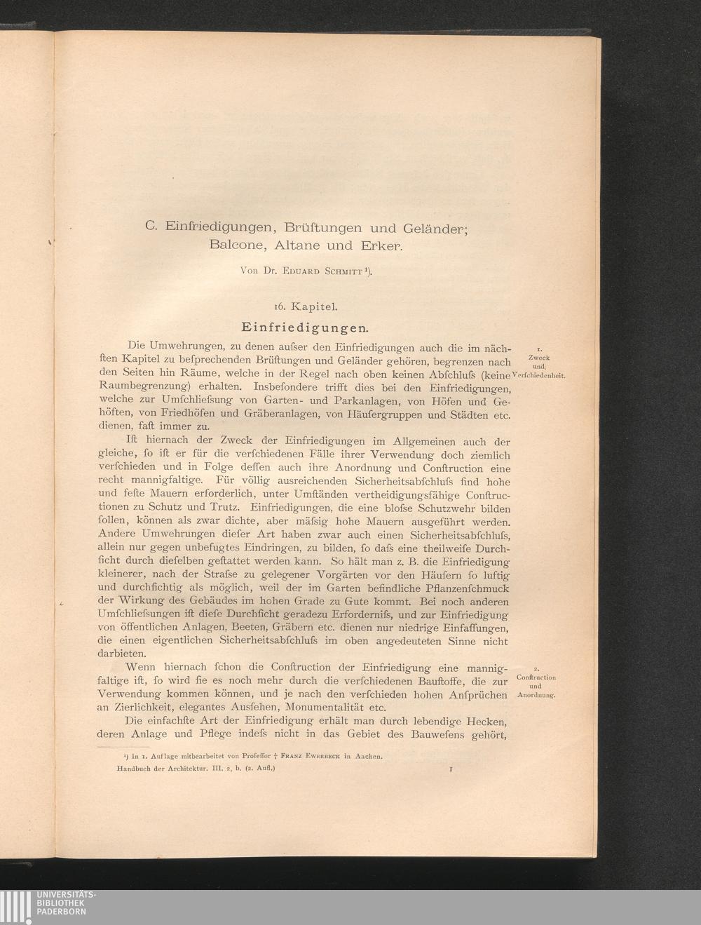 Einfriedungen, Brüstungen, Geländer, Balcone, Altane, Erker, Gesimse / von Franz Ewerbeck, Ed. Schmitt und Adolf Göller