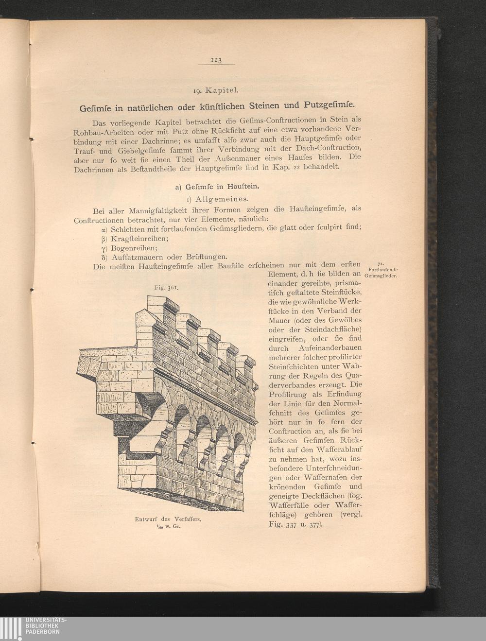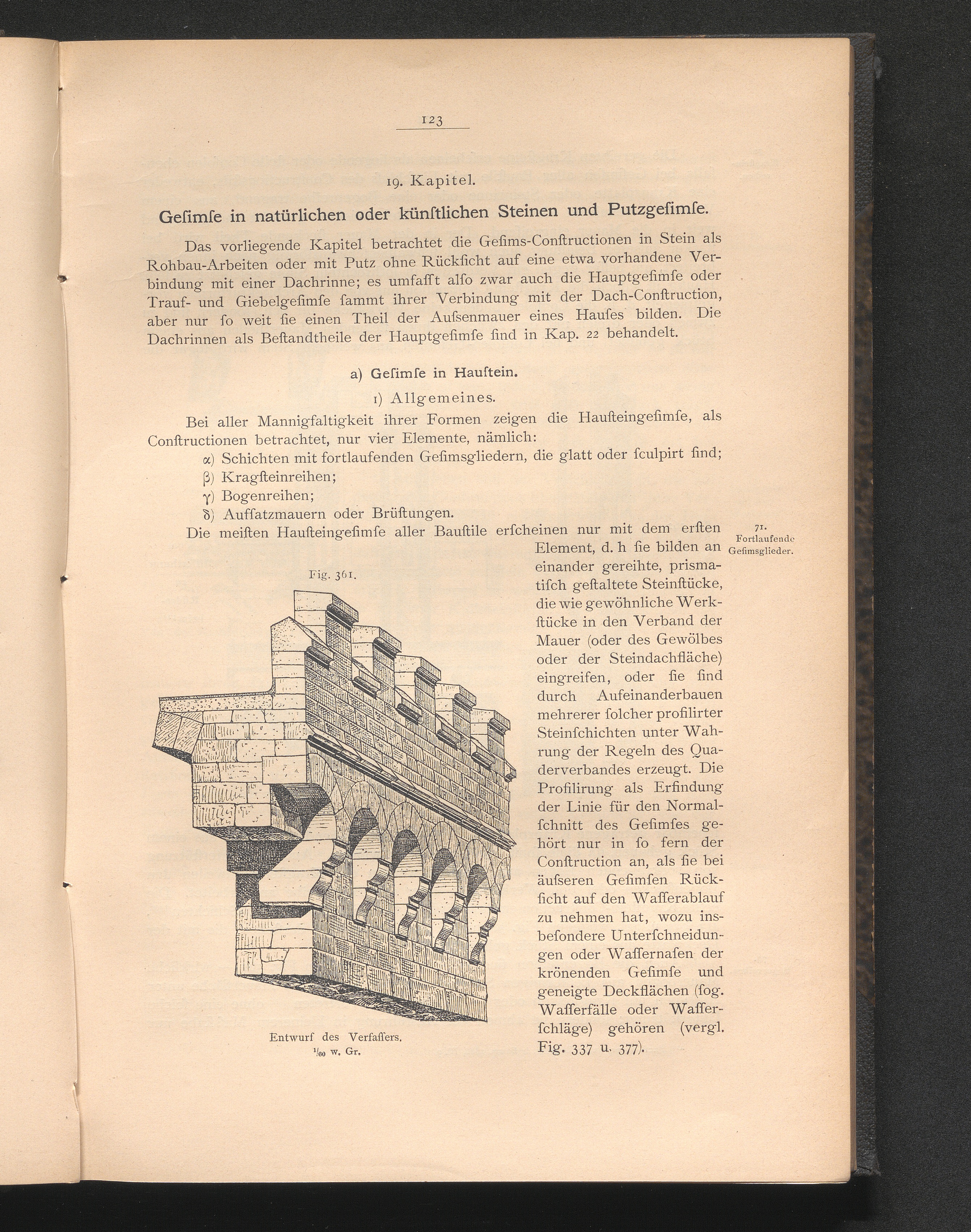 19. Kap. Gesimse in natürlichen oder künstlichen Steinen und Putzgesimse