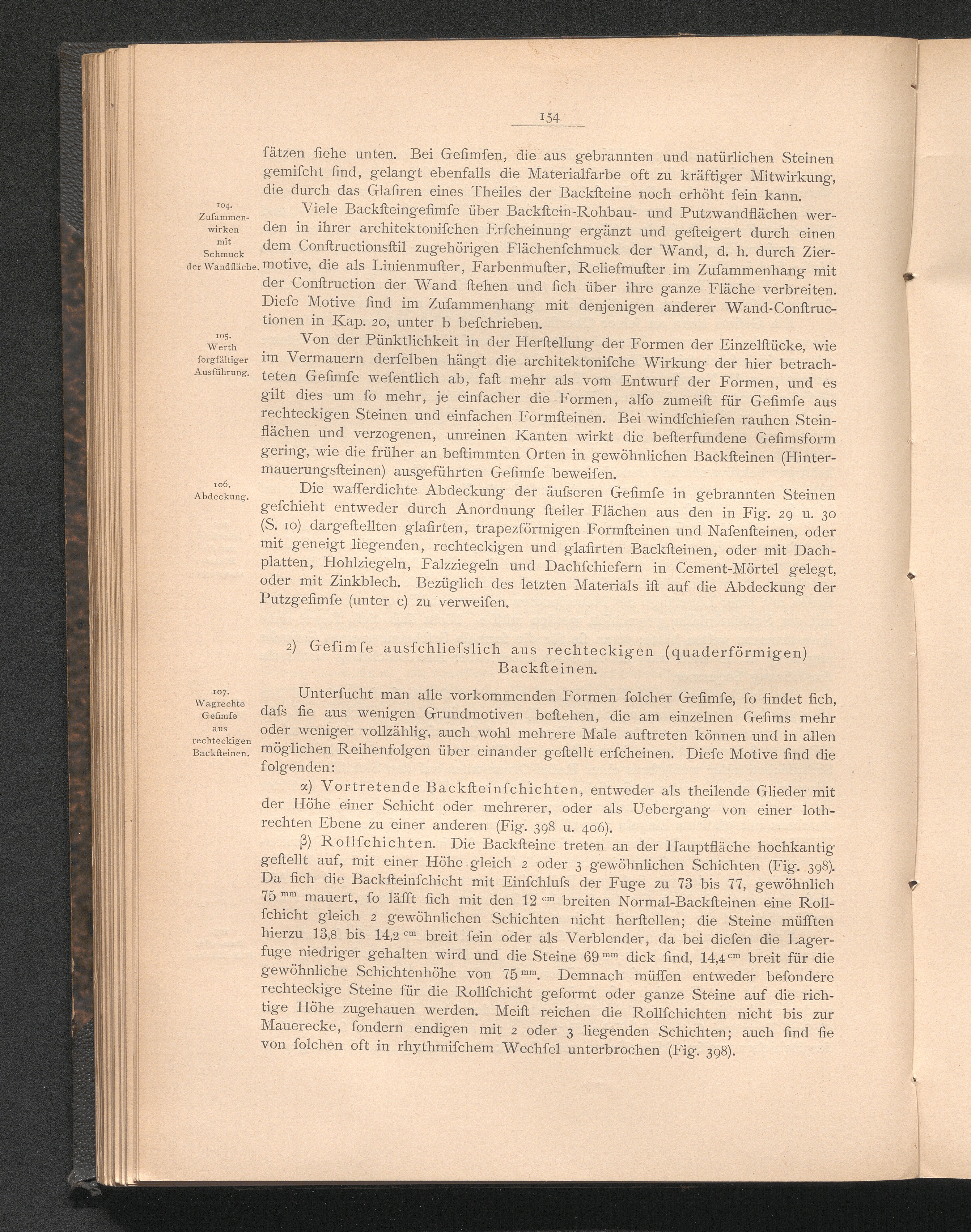 2) Gesimse ausschliesslich aus rechteckigen (quaderförmigen) Backsteinen