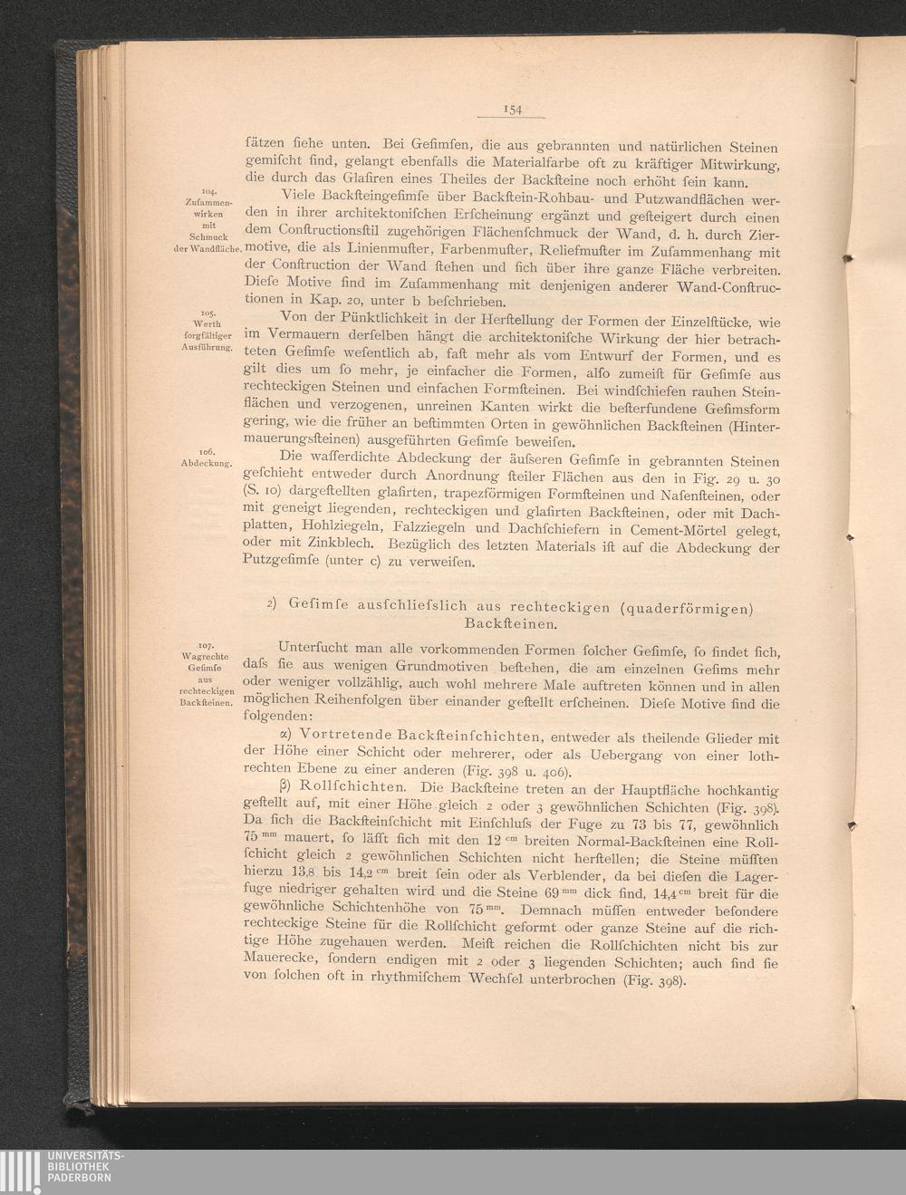 b) Gesimse aus gebrannten Steinen in Rohbau