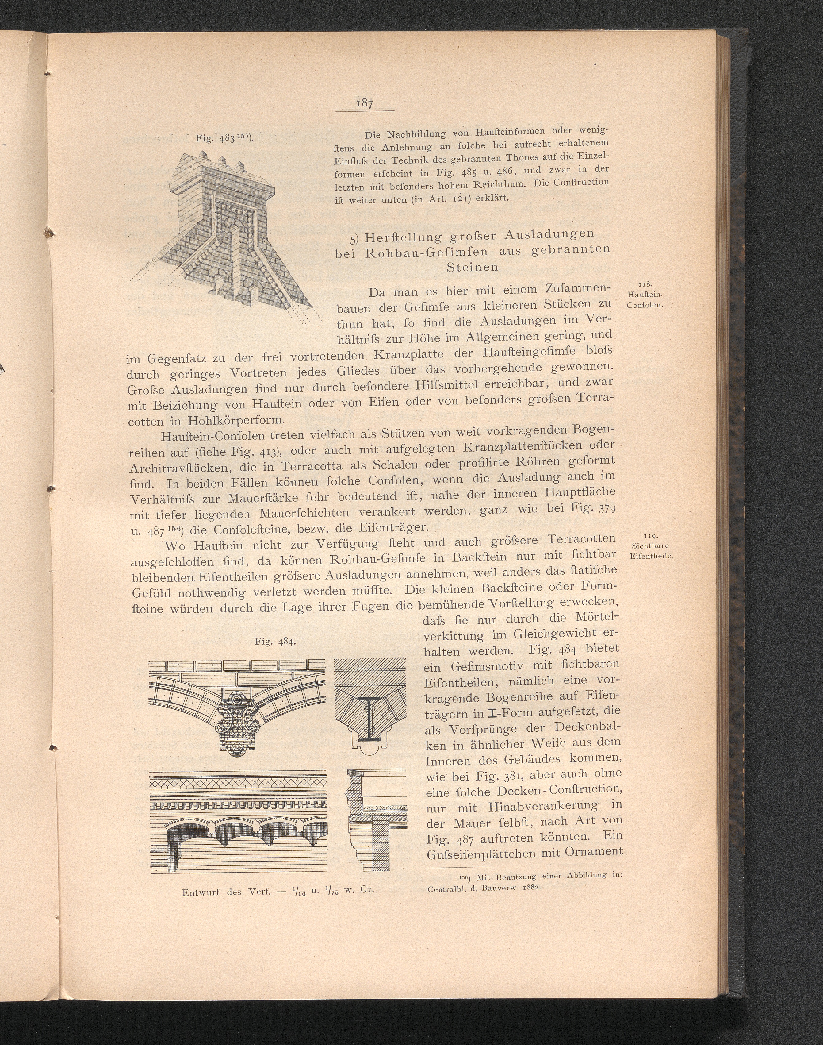 5) Herstellung grosser Ausladungen bei Rohbau-Gesimsen aus gebrannten Steinen