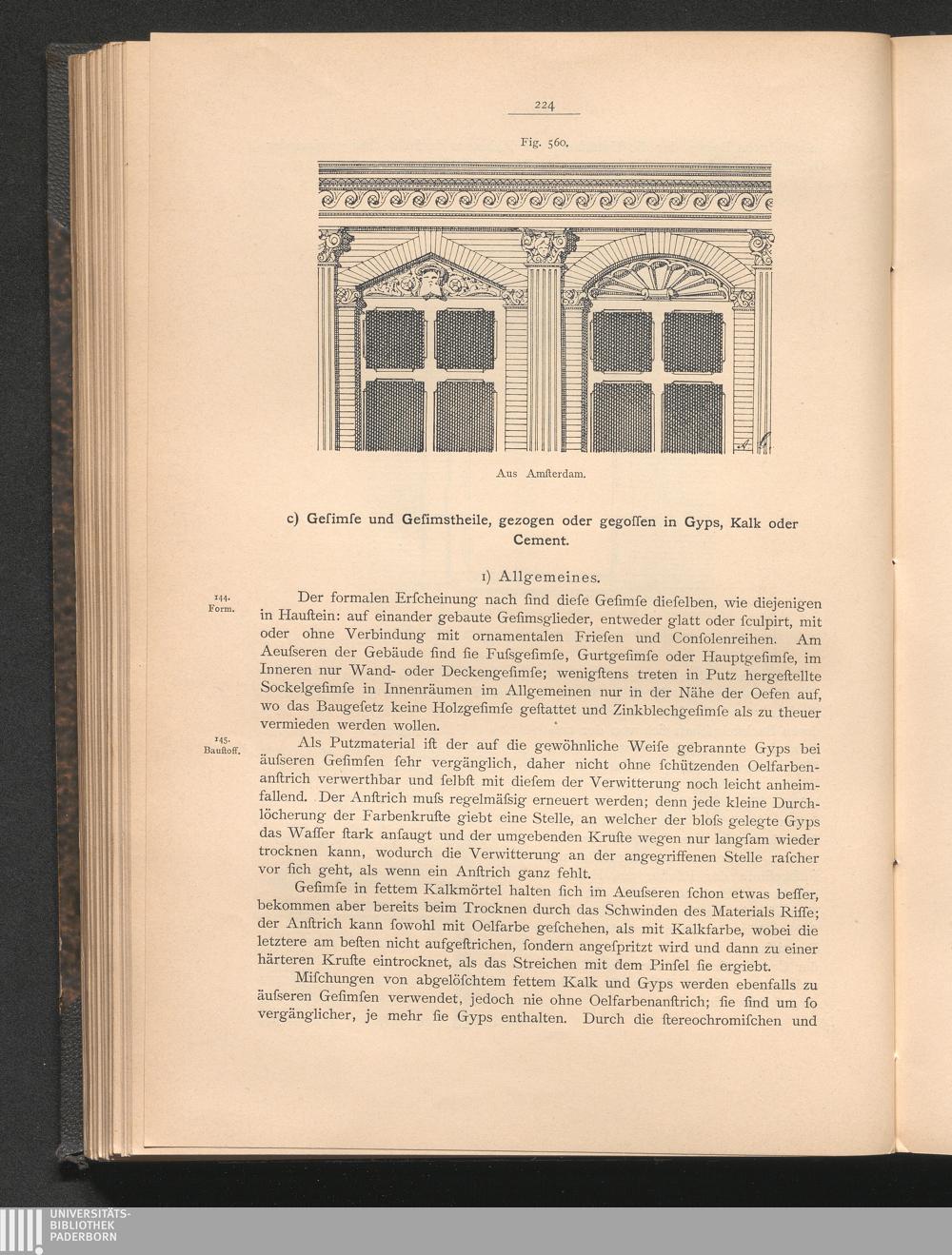 19. Kap. Gesimse in natürlichen oder künstlichen Steinen und Putzgesimse