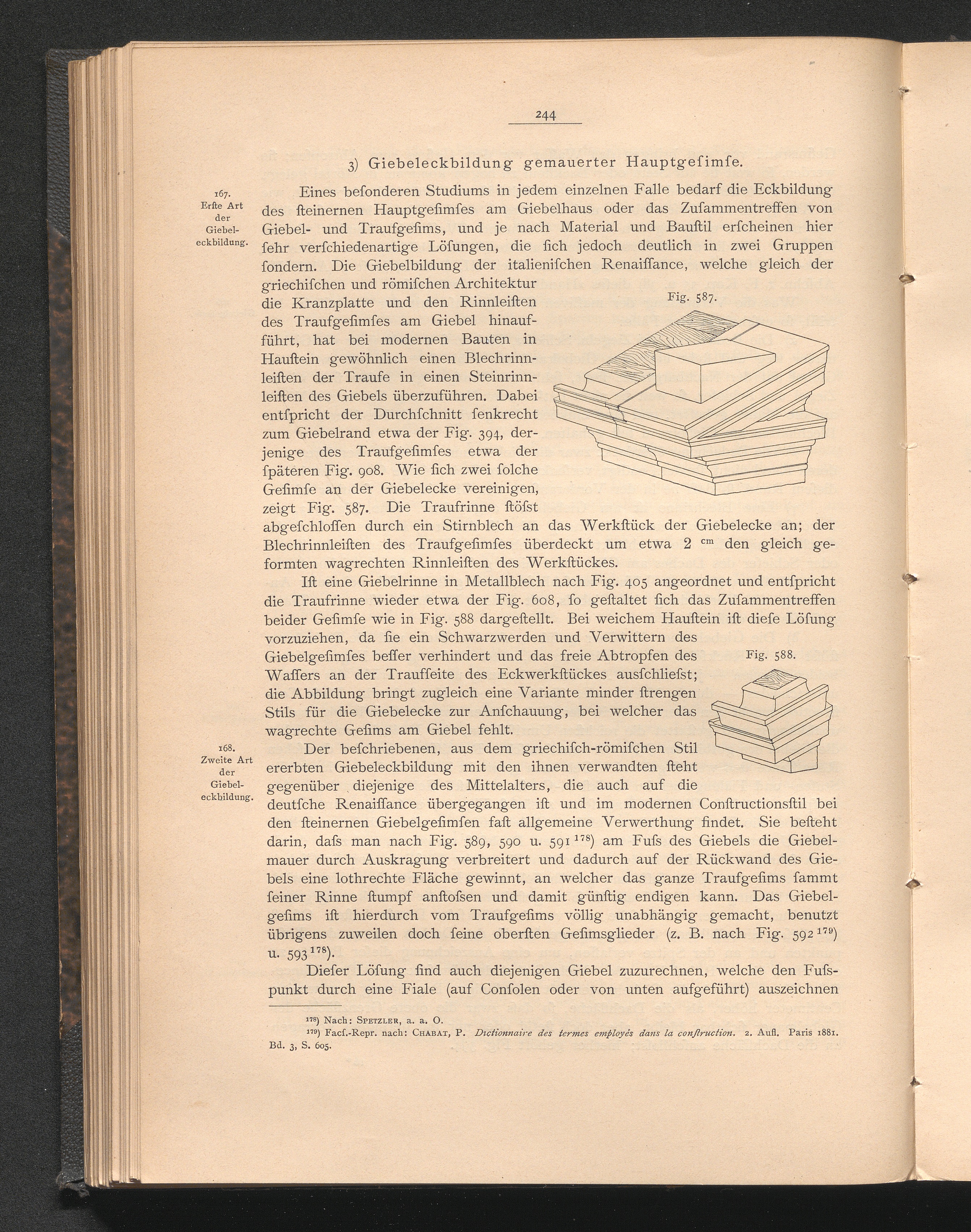 d) Verbindung von Trauf- und Giebelgesimsen in Stein mit der Dach-Construction, mit[...]