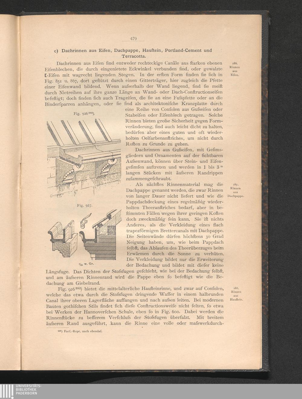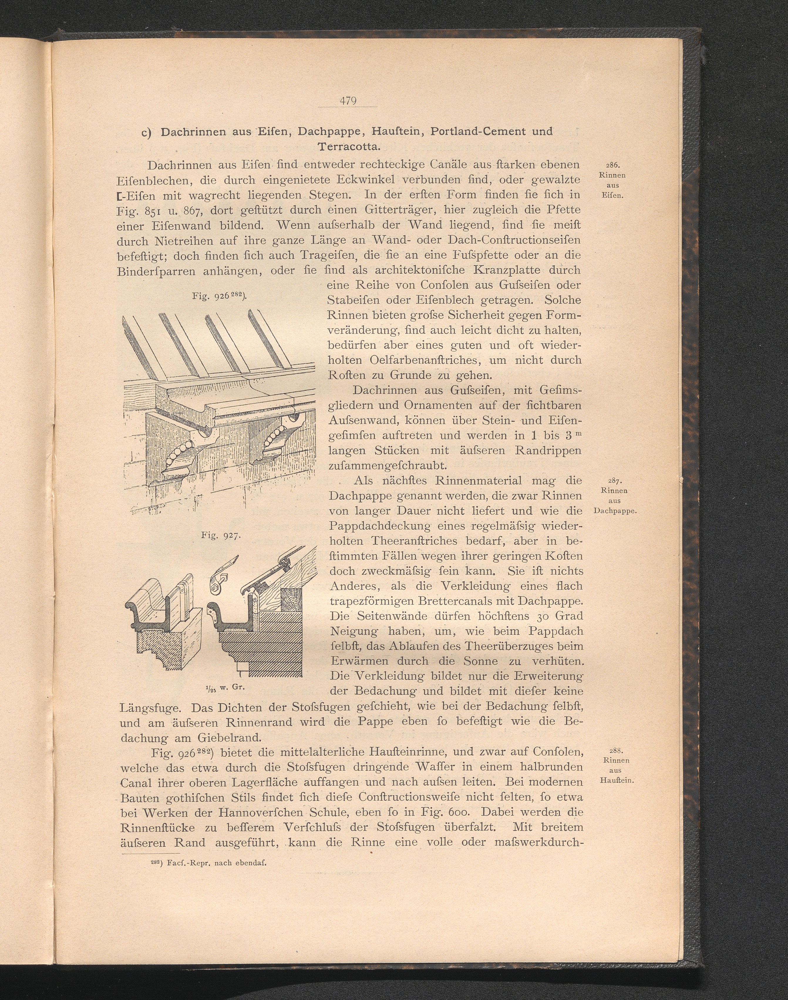 c) Dachrinnen aus Eisen, Dachpappe, Haustein, Portland-Cement und Terracotta