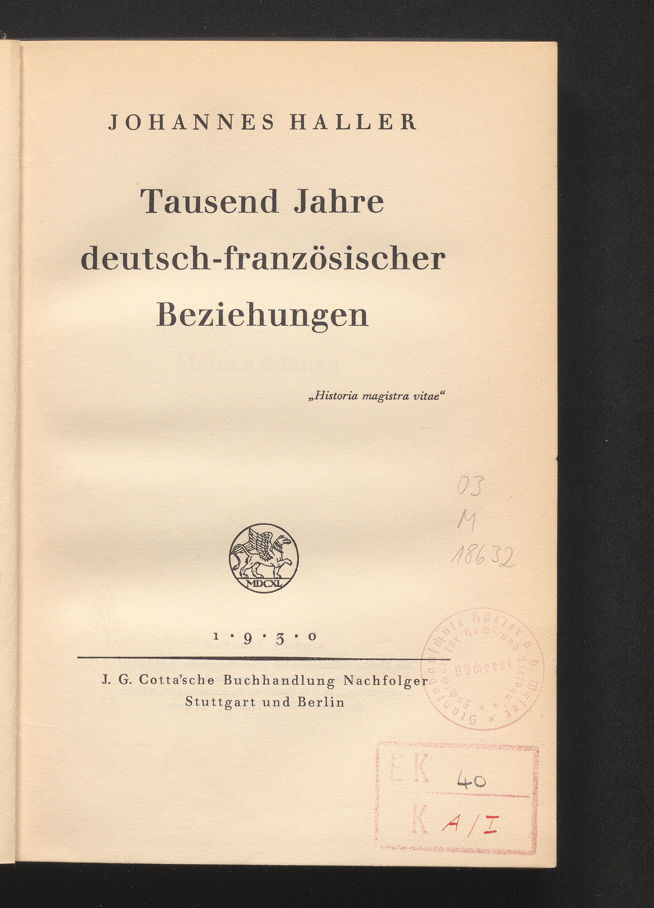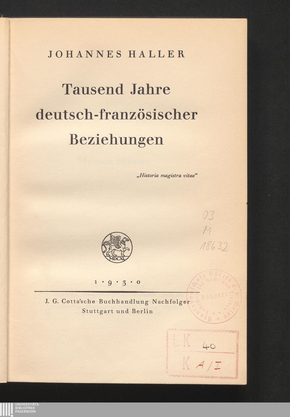 Tausend Jahre deutsch-französischer Beziehungen / Johannes Haller