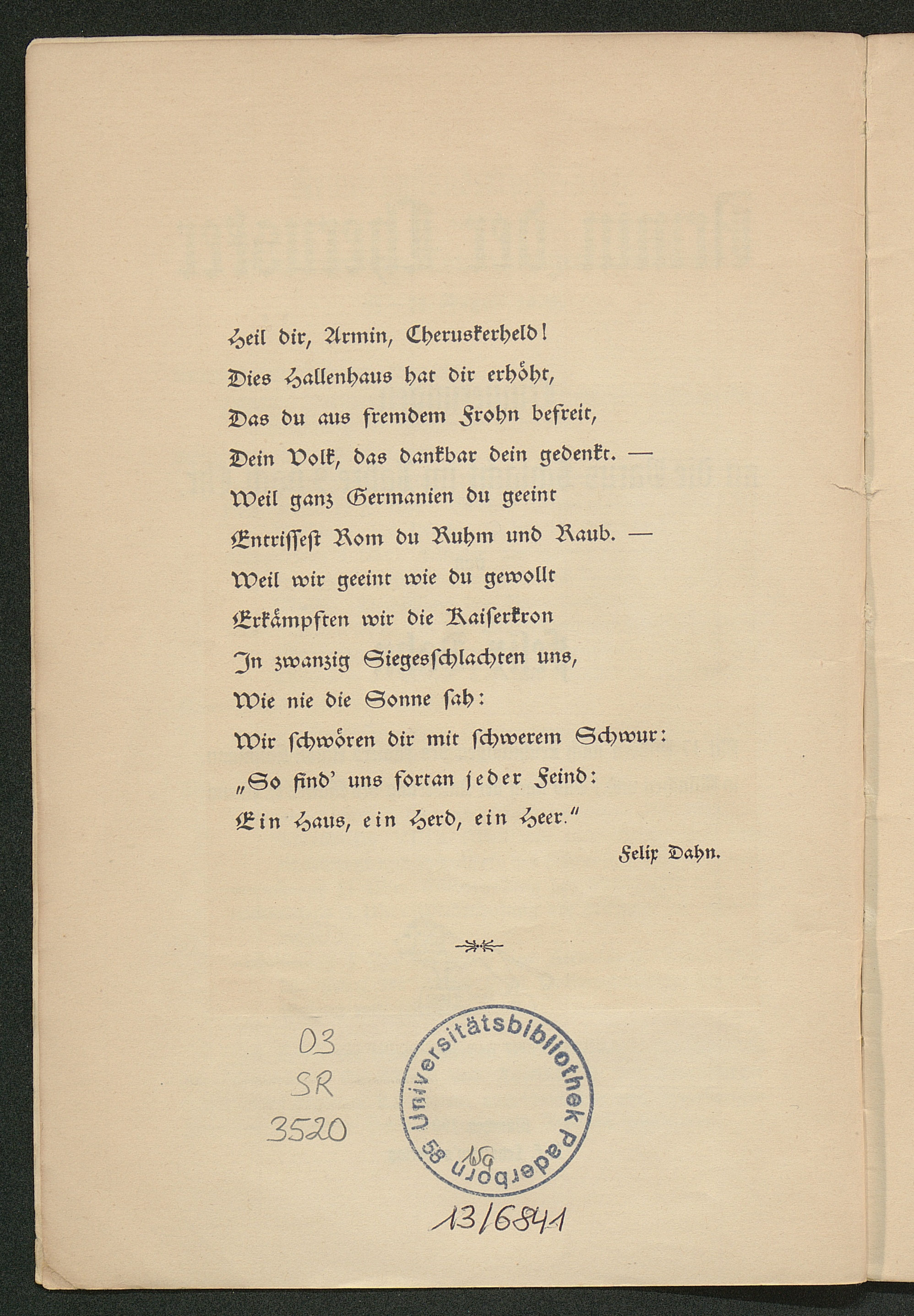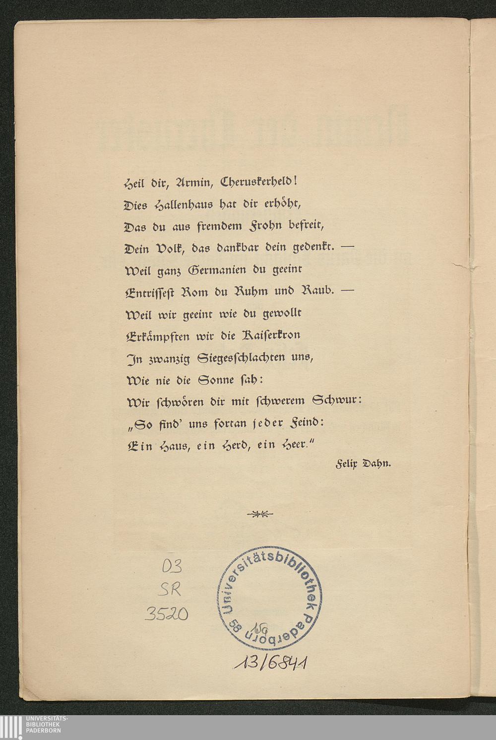 Armin der Cherusker : Erinnerungen an die Varus-Schlacht im Jahre 9 nach Chr. / von Felix Dahn
